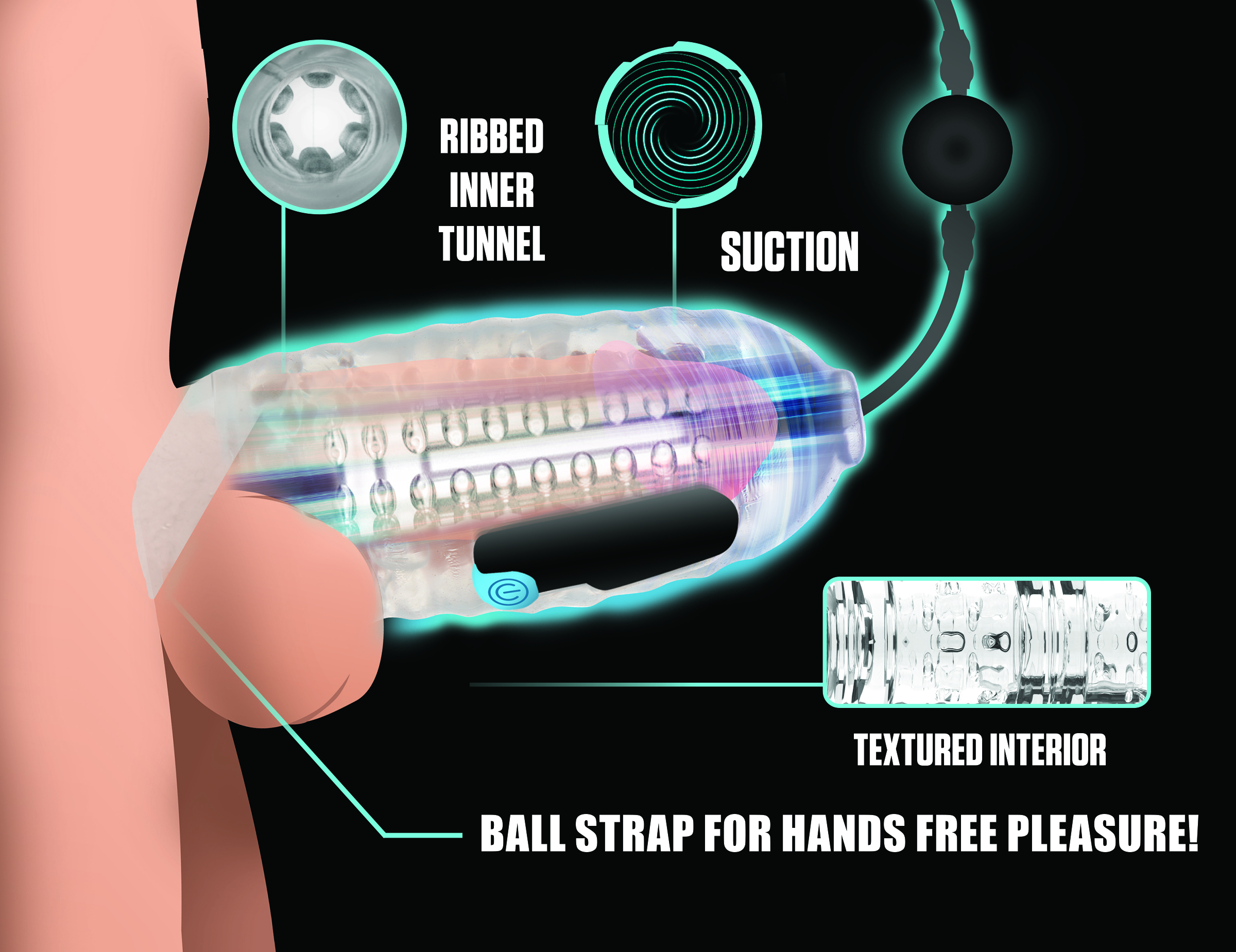 Hands Free Sleeve: This stretchy, TPE sleeve has a ball strap that keeps it securely on your shaft for hands-free play!Mini Milker with Liquid Chamber: This powerful, mini milker acts as a remote that controls suction and vibration! At the end of the remote is a tube with a liquid chamber that keeps fluids from getting sucked up too far.Powerful, Remote Controlled Bullet: The powerful bullet slips into a pocket on the sleeve and delivers 3 speeds and 7 patterns of vibration!Suction: Enjoy up to 3,000 RPMs of suction power from this small but mighty milker! Choose 3 different intensities and find your perfect setting!Rechargeable: Both the remote and the vibrating bullet are rechargeable.