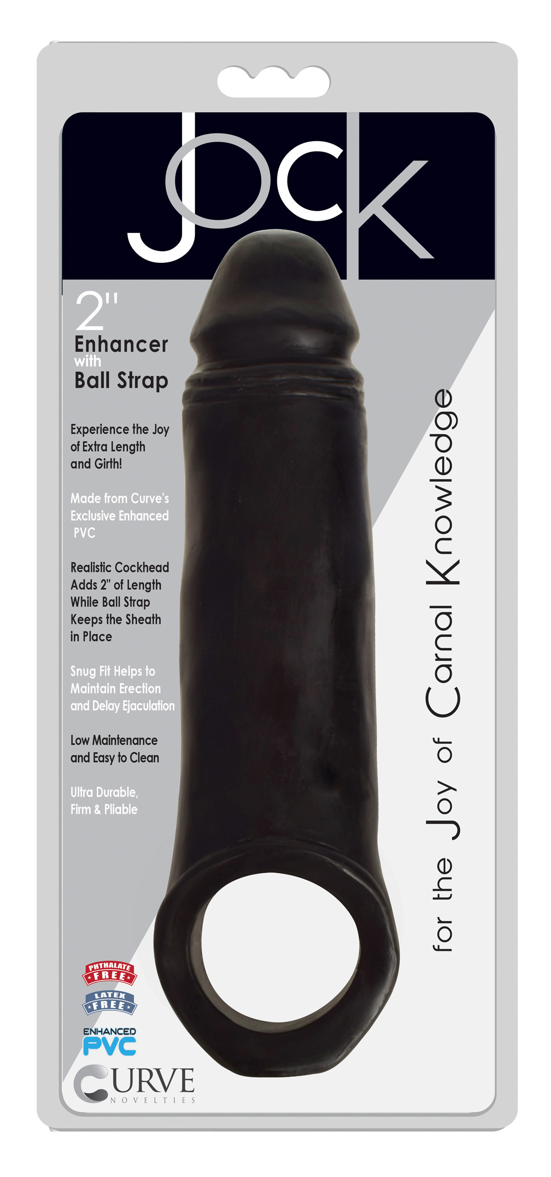Experience the joy of extra length and girth with this slip-on erection enhancer. Made from enhanced PVC that is both latex-free and phthalate-free, you can be confident that you are using a quality and body-safe toy. A realistic cock heads adds 2 inches of length to your penis while the ball strap keeps the sheath in place and creates a desirable tugging sensation. The snug fit helps to maintain your erection and delay ejaculation. This firm, yet pliable pleasure tool can be used with silicone or water-based lubricants and cleans easily with mild soap or toy cleaner.