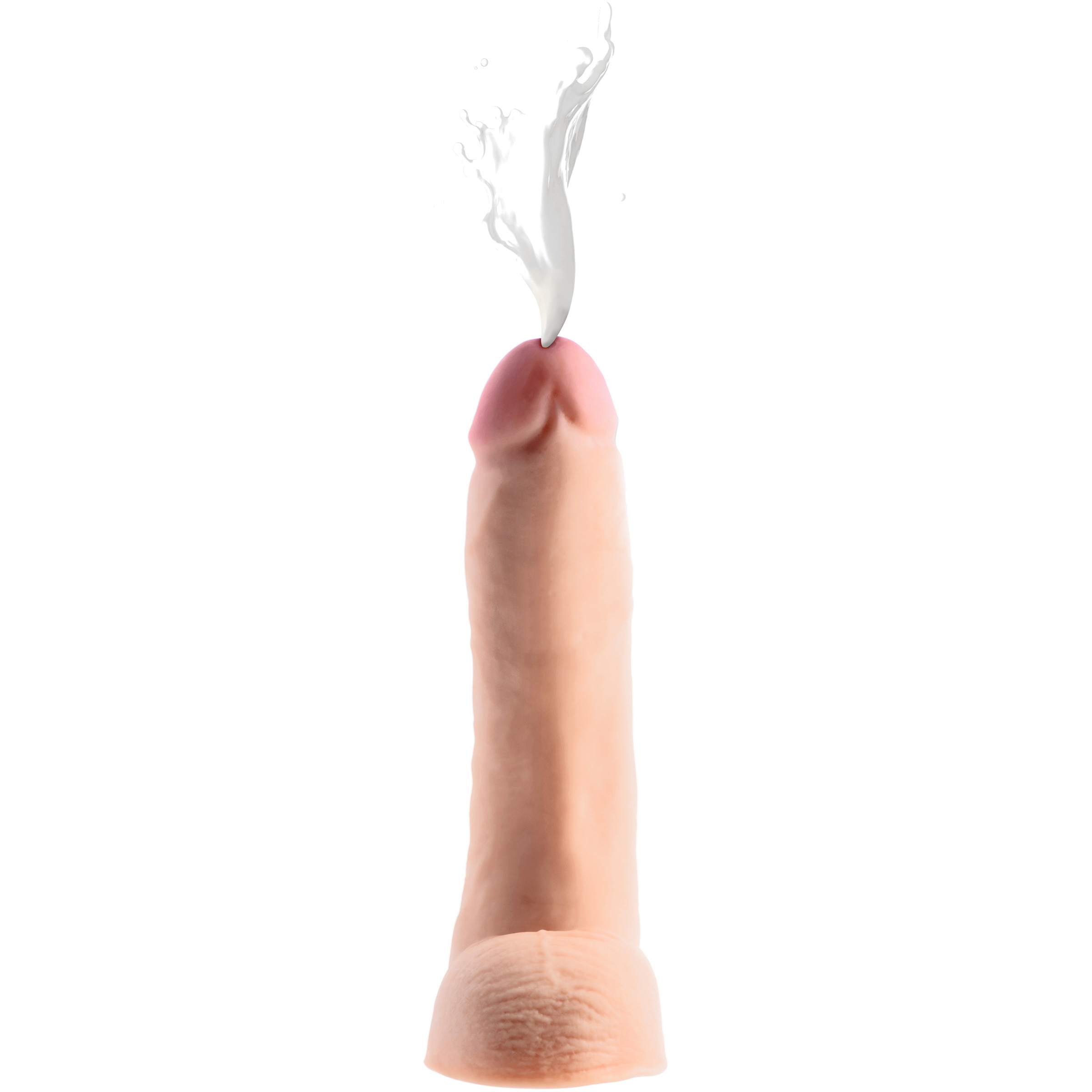 This 9 inch beauty wants to bust a nut. Get ready for Loadz of squirting fun! This ultra lifelike dildo features a dual-density material that looks and feels just like the real thing. Enjoy every vein, wrinkle, and ridge of this ejaculating dong as you enjoy penetration on your own or with a partner. To use, just fill the syringe with Cum Load Unscented Water-based Lube or another fluid, insert the tip of the syringe into the hose, and when you are ready for a wet rush, push in the plunger! This material is compatible with both silicone and water-based lubes and can be cleaned with mild soap and warm water after use.