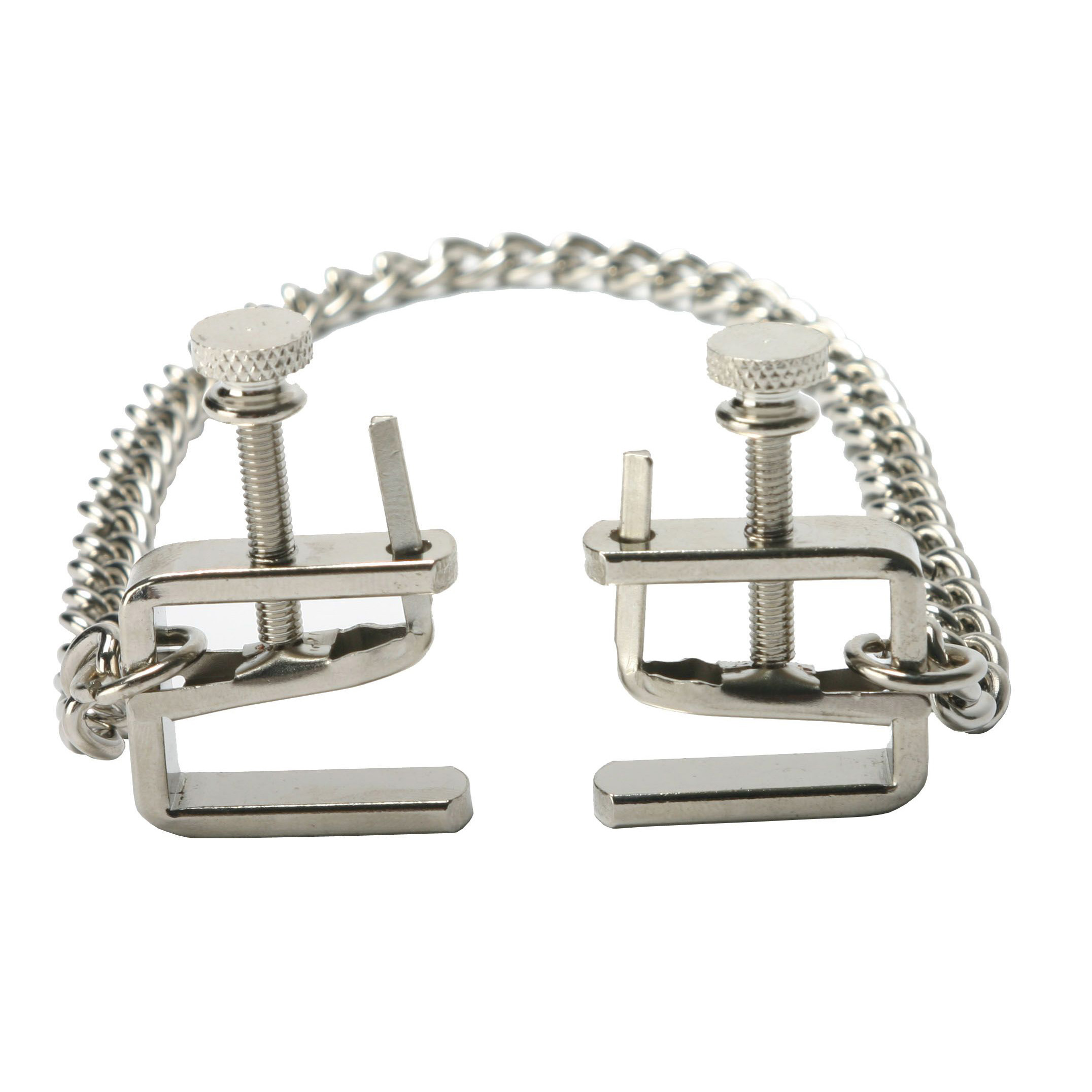 These adjustable C-Clamps get their namesake from their shape. Great for beginner or advance nipple play. These clamps have a thumbscrew that allows the user to adjust the intensity of the pressure applied