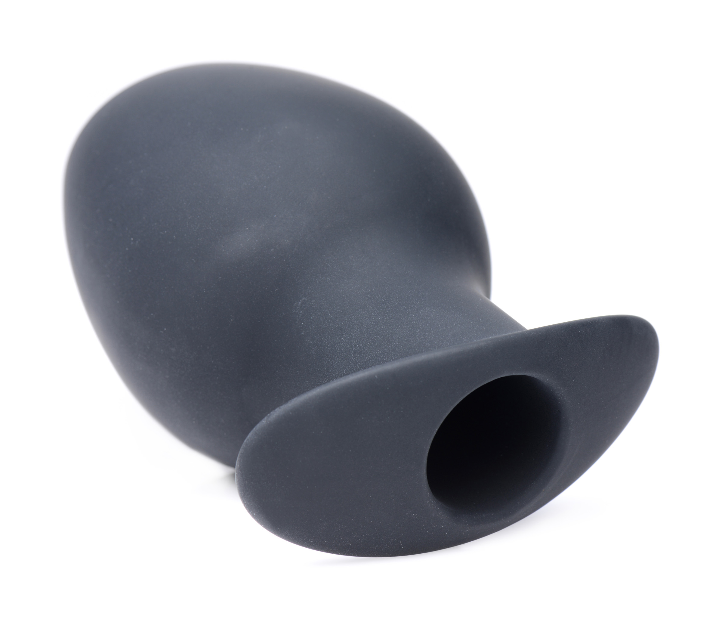 Quench your anal cravings with the Ass Goblet! This larger version of the plug is hollow, but angled for easy insertion to set it apart from similar anal accessories. The comfortable, rounded opening assists with penetration, allowing the wide bulb to squeeze into you. Once inside, the hollow core leaves you open to a peek or a poke! The ergonomic base sits perfectly between your cheeks so that you can wear it for hours! Made of premium silicone, this butt plug is non-porous, phthalate-free, and easy to clean with mild soap or toy cleaner. Avoid use with silicone lubricants.