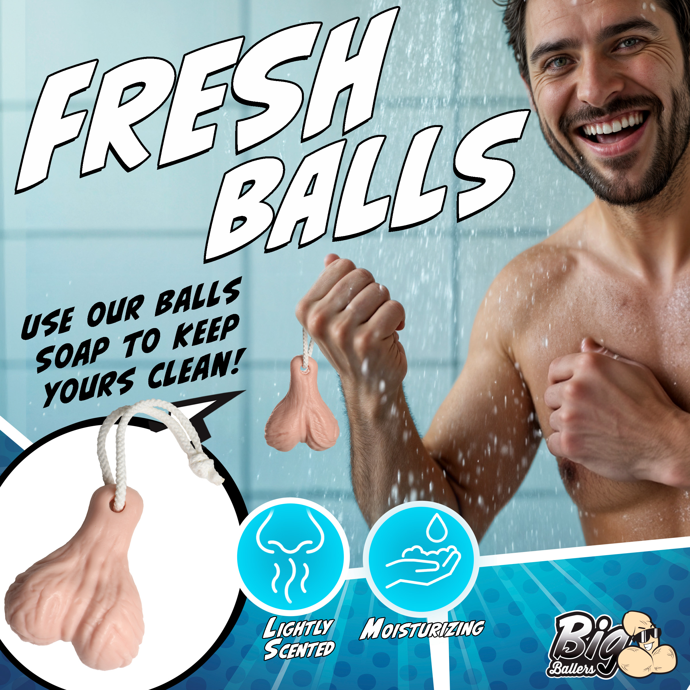 Introducing Balls Soap – the ultimate gag gift for those who love a good laugh! This soap is hilariously shaped like saggy balls, making it an ideal choice for pranks or White Elephant gift exchanges. Lightly scented, it offers a gentle and refreshing fragrance that lingers pleasantly. Don't worry about dry skin; this soap keeps your skin hydrated and moisturized. Its practical design includes a nylon rope for easy hanging and storage. Get it for your friends and family and slip it into their shower for a prank! The next time your friend reaches for the soap, they'll be grabbing some soapy balls! Keep it in your own shared shower and surprise your roommates. Give it as a gift and everyone will be laughing once it's revealed! Measurements: Overall: 6. inches Length x 3.6 inches Width x 2.1 inches Depth Materials: Rope: Nylon Soap: Propylene Glycol, Glycerin, Sucrose, Stearic Acid, Aqua (Water), Lauric Acid, Sodium Lauryl Sulfate, Sodium Hydroxide, Fragrance, Titanium Dioxide, Tocopheryl Acetate, Yellow No.5 (CI 19140), Red No.40 (CI 16035). Scent: Mild, fresh scent Color: Light Note: For external use only.