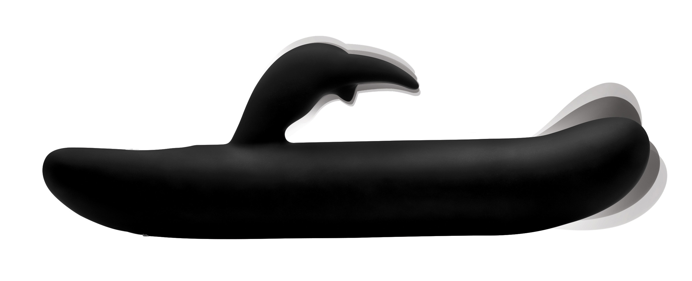 Experience a blended orgasm from the blissfully buzzing bunny against your clitoris and the smooth-as-silk shaft that simulates a Come-Hither motion against your sweet spot. This premium silicone vibrator features 3 speeds of thrumming and 7 patterns of throbbing, as well as an ample shaft that flexes up and down to stroke your G-spot with 3 speeds of its own. The elegant gem-adorned control panel is simple to use. A protruding bunny nose will pinpoint your clit for vibration, while the ears will flutter around it for an entirely different sensation. This pleasure tool is magnetically rechargeable and waterproof so that you can treat yourself in the bath or shower. The phthalate-free material is non-porous for an easy clean with mild soap or toy cleaner. Avoid use with silicone lubricants. Measurements: 9.25 inches in total length, 5.5 inches insertable length, 1.5 inches at widest diameter, 1.4 inches at narrowest diameter Material: Silicone, ABS Plastic Color: Black Note: Charges via USB