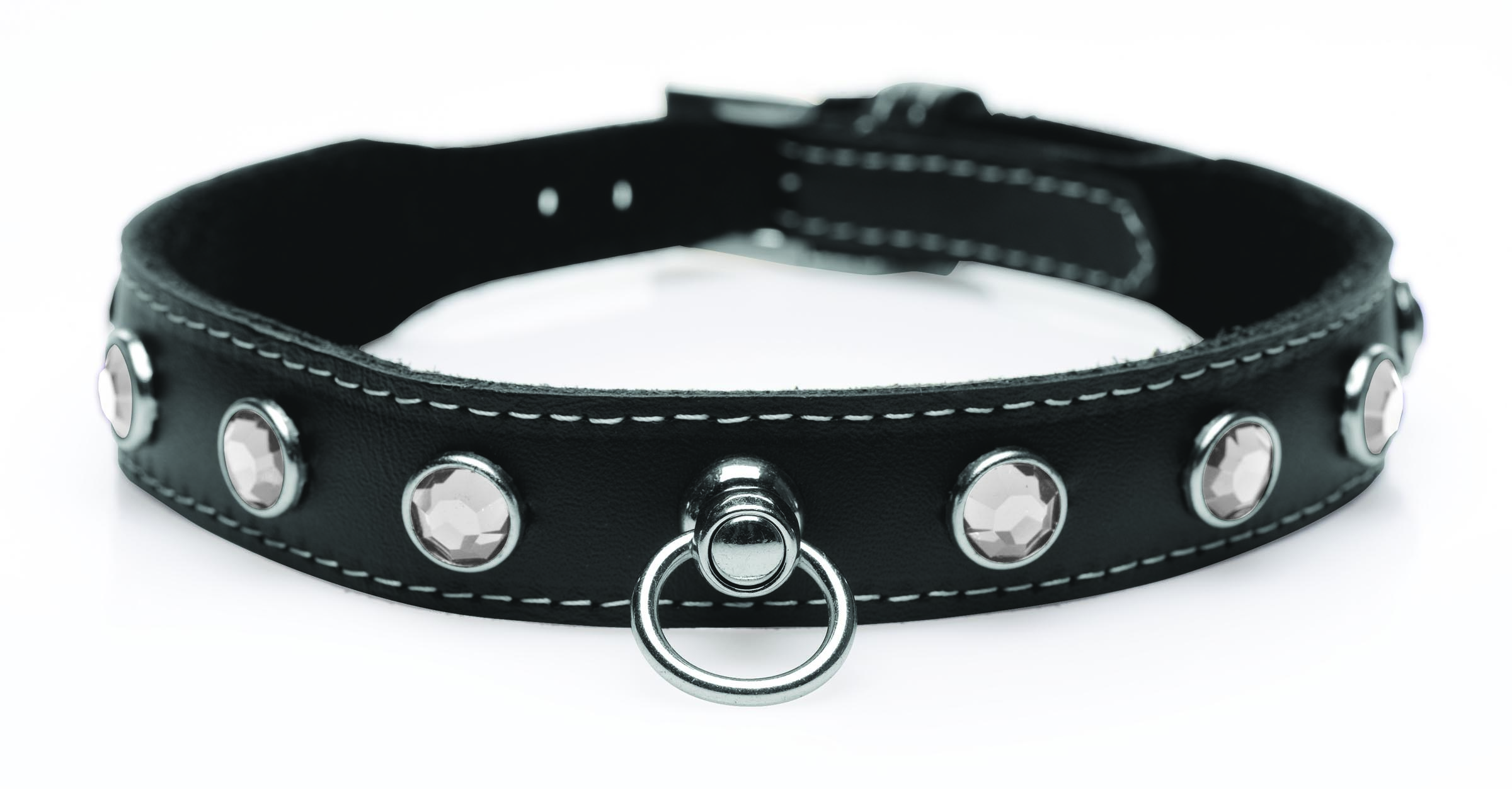 Bejeweled Collar: Glimmering rhinestones adorn the glamorous collar that adorns your neck.Adjustable: Find the perfect fit by adjusting to a comfortable length.Elegant and Soft: The inner lining is soft against the skin. The collar is slim and sits elegantly upon the neck. O-Ring: The detailed O-ring is a fashionable accessory or functional tool for attaching other accessories or a leash or chain to.