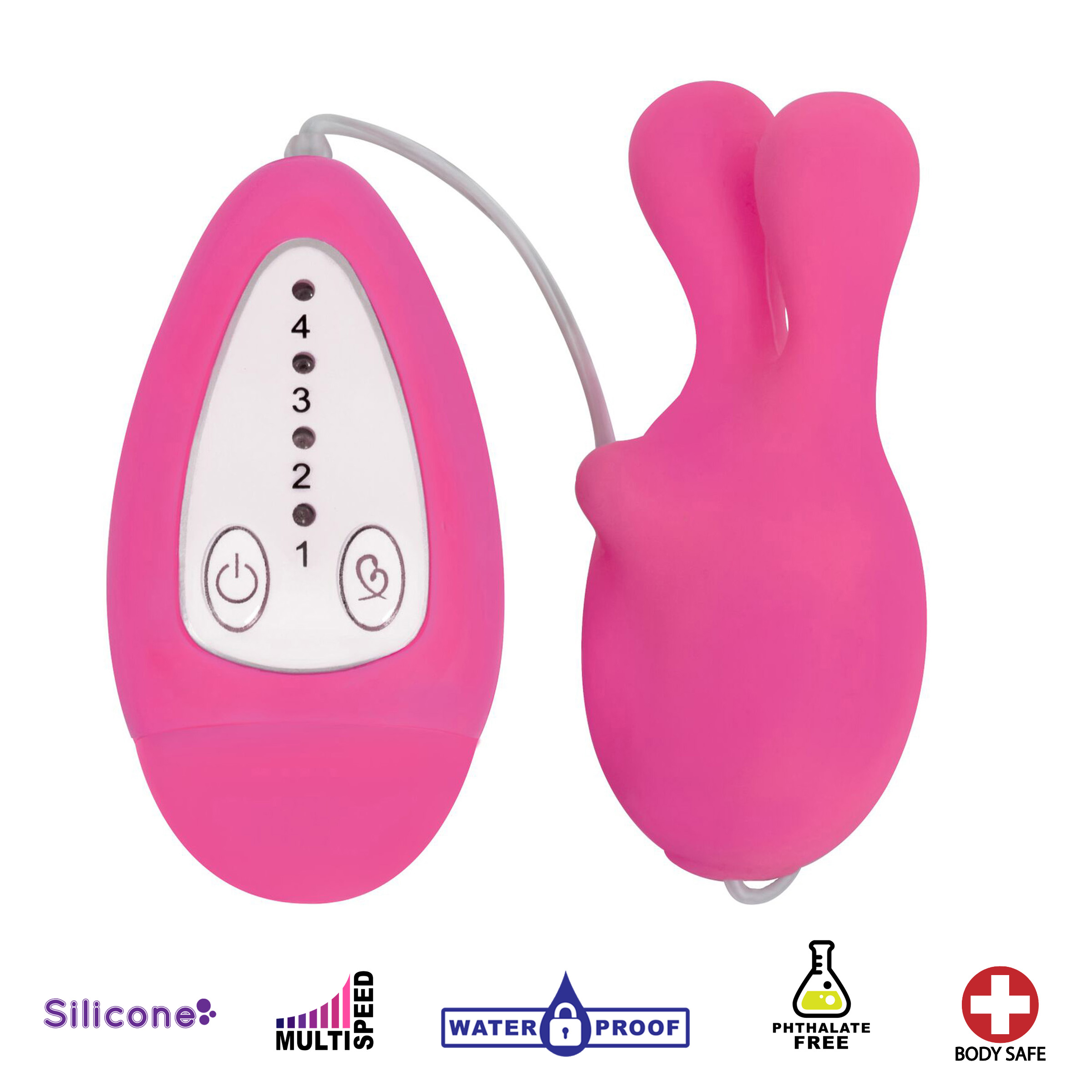 Bring on the Bounce with this adorable bunny teaser. The extra long wired remote is perfect for solo or partner play. Let the flexible, delicate ears glide over your body or theirs- use it anywhere you want targeted pleasure! There are 4 escalating speed settings, with easy to read lights on the controller. It is even waterproof for wet and wild fun! Curve Toys is known for their ultra-realistic bio-skin formula used to create the best dildos and adult toys in the world. They manufacture their adult replica products with USA materials that are body-friendly, phthalate-free, and top-grade. Their proprietary blend of bio-skin is mixed in-house, making them a leader in sexual health. All products are inspected for superior functionality so that they represent the value, quality, and innovation from the factory to the bedroom. Staffed by experts with over 60 cumulative years in the adult manufacturing, Curve Toys is the perfect combination of passion, creativity and experience; in short, we know pleasure. Measurements: 3 inches in length, 1.25 inches in width Material: Silicone, ABS Color: Pink Note: 1 AAA battery, not included