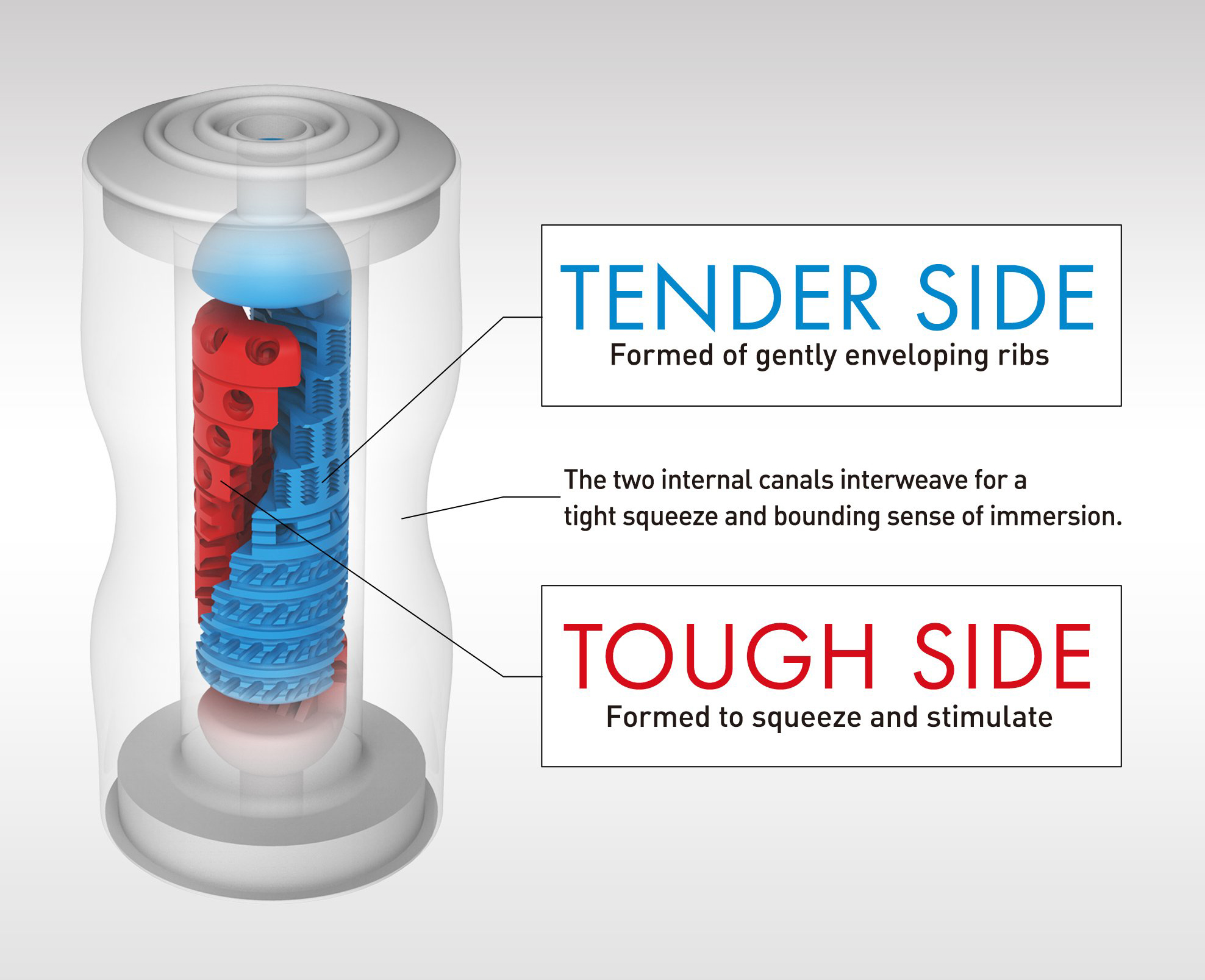 A two-in-one blend of stimulation The Bitter Side firmly tightens while the Sweet Side gently clings to your shaft. Normal use is one side at a time; however, simultaneous use of both will provide a brand new feeling of two contrasting sensations To create a strong internal vacuum, simply remove the sticker at the top of the cup before use and cover with your finger while using. Cup features the smooth pad insertion mechanism This mechanism not only offers extra adherence, air-tightness and less lubricant leakage, but will automatically apply lubricant to your shaft as you insert Measurements: cup is 2.6 inches wide and 6.1 inches tall. Materials: TPE, PE. Color: White. Note: One-Time Use Recommended.