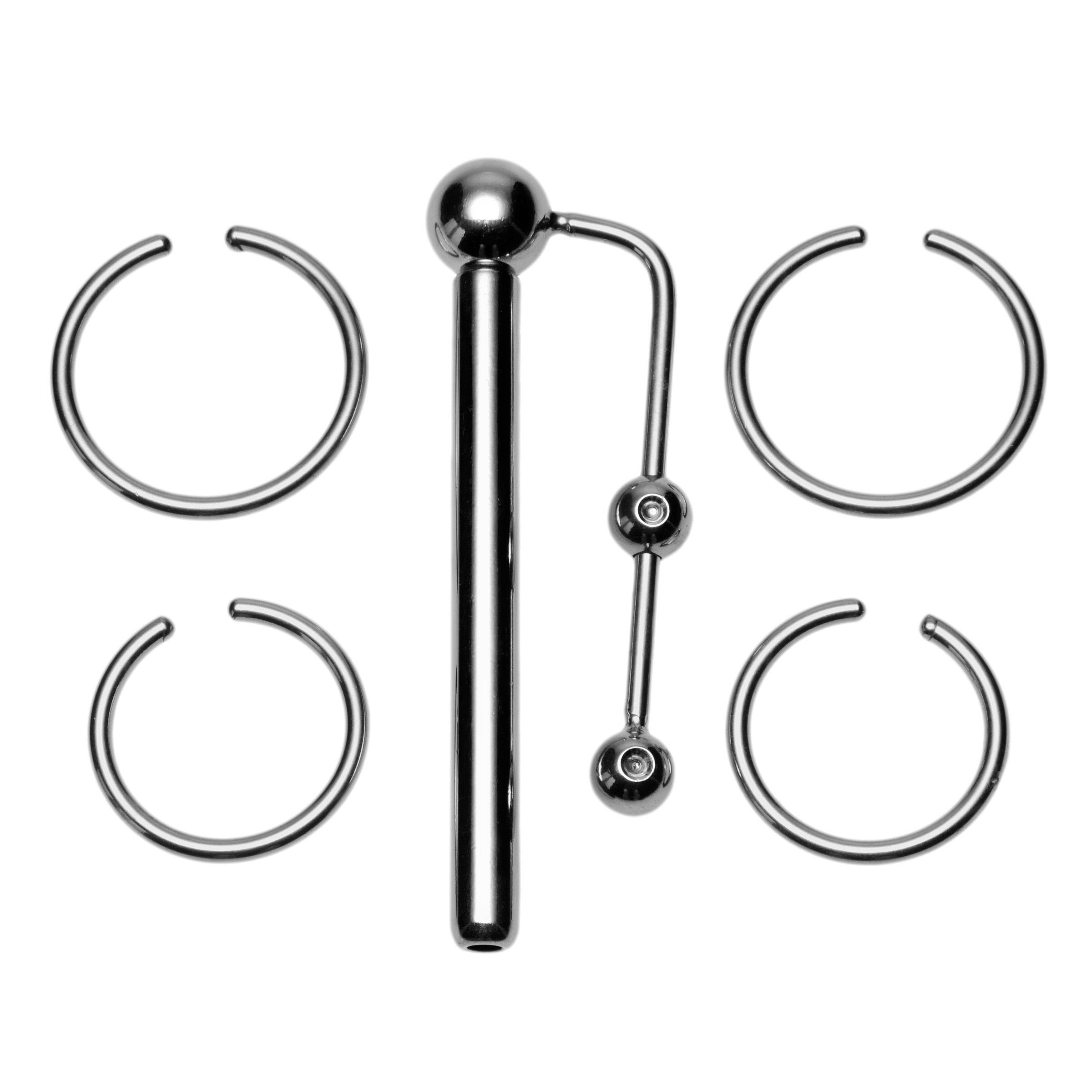 Excrucio is an imaginative urethral plug made of durable, easy to sterilize stainless steel. Pleasure is increased by the intense pressure once the extra wide urethral insert is in place. Four interchangeable rings provide a customized fit, one behind the cock head and one along the shaft. Long and smooth, the cum-thru tube allows for ultimate satisfaction. Stainless steel is non-porous, hygienic, easy to sterilize, temperature and impact resistant, and offers a long-term value.