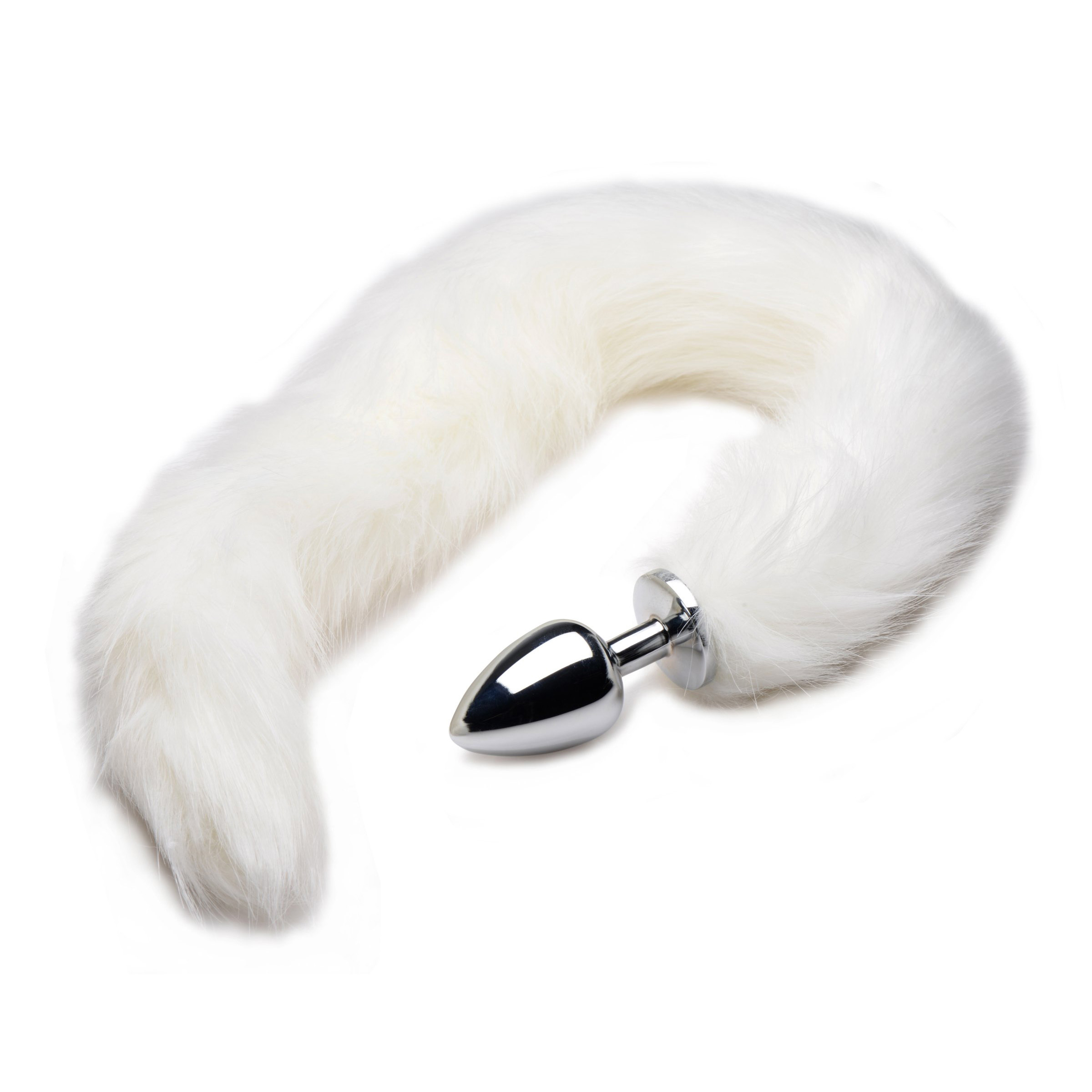 Impress your lover with your fluffy, white tail, as pure as snow Let out the wild animal within with a long, luxurious tail plug. Savor the sensation of cool, hard metal inside you as the weight of the tail creates a delightful, heavy fullness. The petite plug is smooth and easy to insert, making it perfect for even beginners to anal play. You will love the soft, sensual sensation of the tail as it brushes against the backs of your legs, and your lover will be turned on as you crawl around at their feet. Show them what a well-behaved pet you are Made of aluminum, this plug is non-porous and phthalate-free, making it easy to sanitize with mild soap and water and compatible with all types of lubricants. Measurements: 33 inches in total length. Plug length is 3.25 inches, 3 inches insertable. 1.5 inches in diameter. Material: Aluminum, faux fur. Color: White.