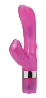 The ultimate in feminine arousal The G-Kiss massager provides 3 ascending speeds of vibration and intense power with 2 motors. The soft, flexible shaft is contoured for optimum g-spot arousal and the clitoral stimulator features raised pleasure nubs that enhance your sensory experience. Easy push button controls allow you to focus on your pleasure, and the G-Kiss is waterproof as well for fun in your shower or bath Measurements: 6.88 inch overall length, 3.75 inch insertable length, 1.36 inch max diameter, Material: TPR, ABS, Color: Pink, Note: Waterproof, Requires 2 AAA batteries, not included