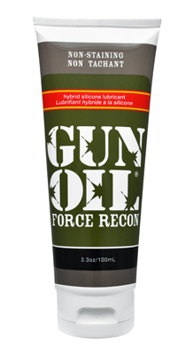 Experience the best of both worlds with this hybrid lube Gun Oil Force Recon combines both silicone and water to create a clear, non-staining, easily washable, long lasting lubricant gel. This innovative formula is easy to clean up, but slick and non-drying for plenty of smooth action. Ingredients: Propylene Glycol, Water, Cyclopentasiloxane, Butylene Glycol, Dimethicone/Vinyl Dimethicone Crosspolymer, Hydroxyethl Acrylate, Sodium Acryloydimethyl Taurate Copolymer, Size: 3.3 oz/100 ml Tube, Note: Not recommended for use with silicone toys. Safe to use with condoms
