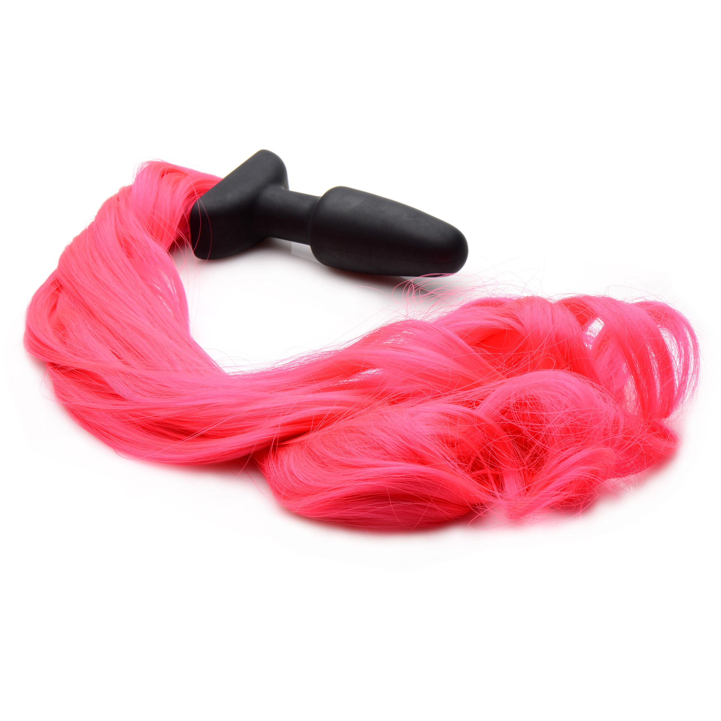 Enjoy hot equine action in a fun, flirty color with this smooth, full pony tail! Braid it, brush it, swish it, show it off! The tail is a full 20 inches of synthetic fiber, topped with a phthalate-free and silky smooth silicone plug. The classic spade shape inserts easily, with a flared base to keep it firmly in place.