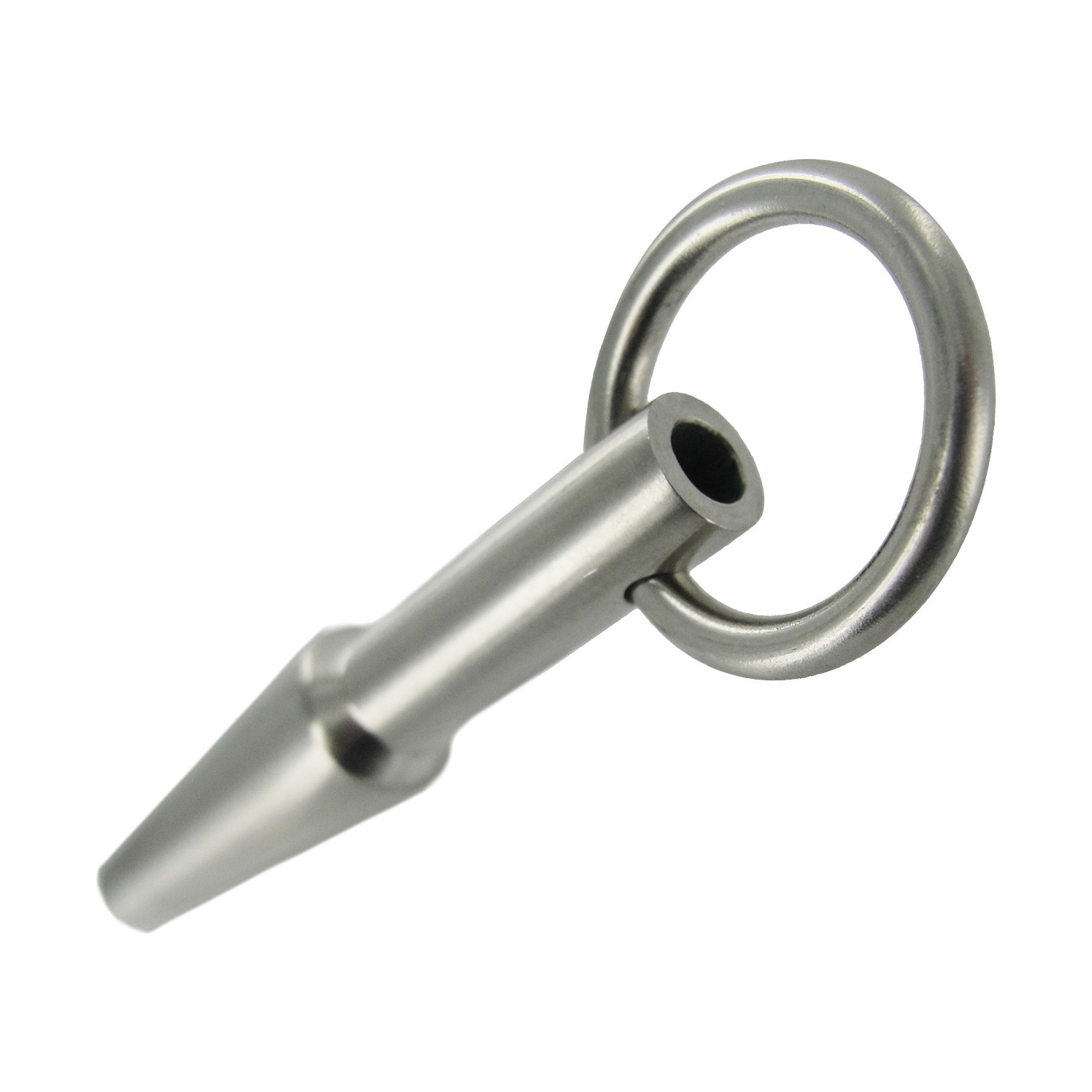 Want a Prince Albert piercing minus permanence? The Lacuna Penis Jewel gives you the pierced look minus the piercing! Made from high quality stainless steel, this urethral toy is non-porous and easy to sterilize. The hollow-core design is engineered to allow for ease of use and allows use to ejaculate through the while wearing it.