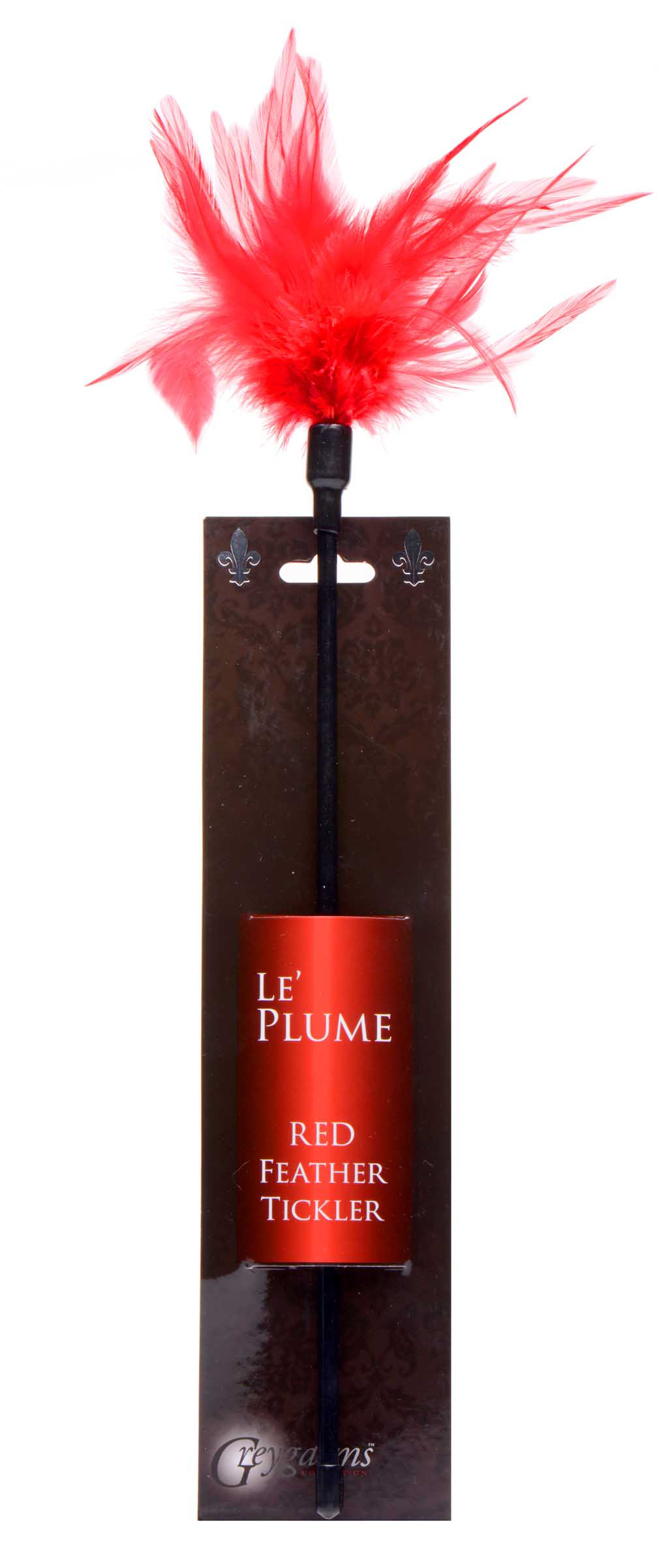 I am lying on my stomach, my limbs securely fastened to each post of the bed. All my senses are burning. Sir pauses for agonizing seconds. Then I feel it. The most glorious sensation trailing down my spine. The softest caress of feathers dance upon my skin. How is it possible that something so light can stir up such desire? Measurements: 17 inches in length. Material: Feathers, plastic. Color: Red
