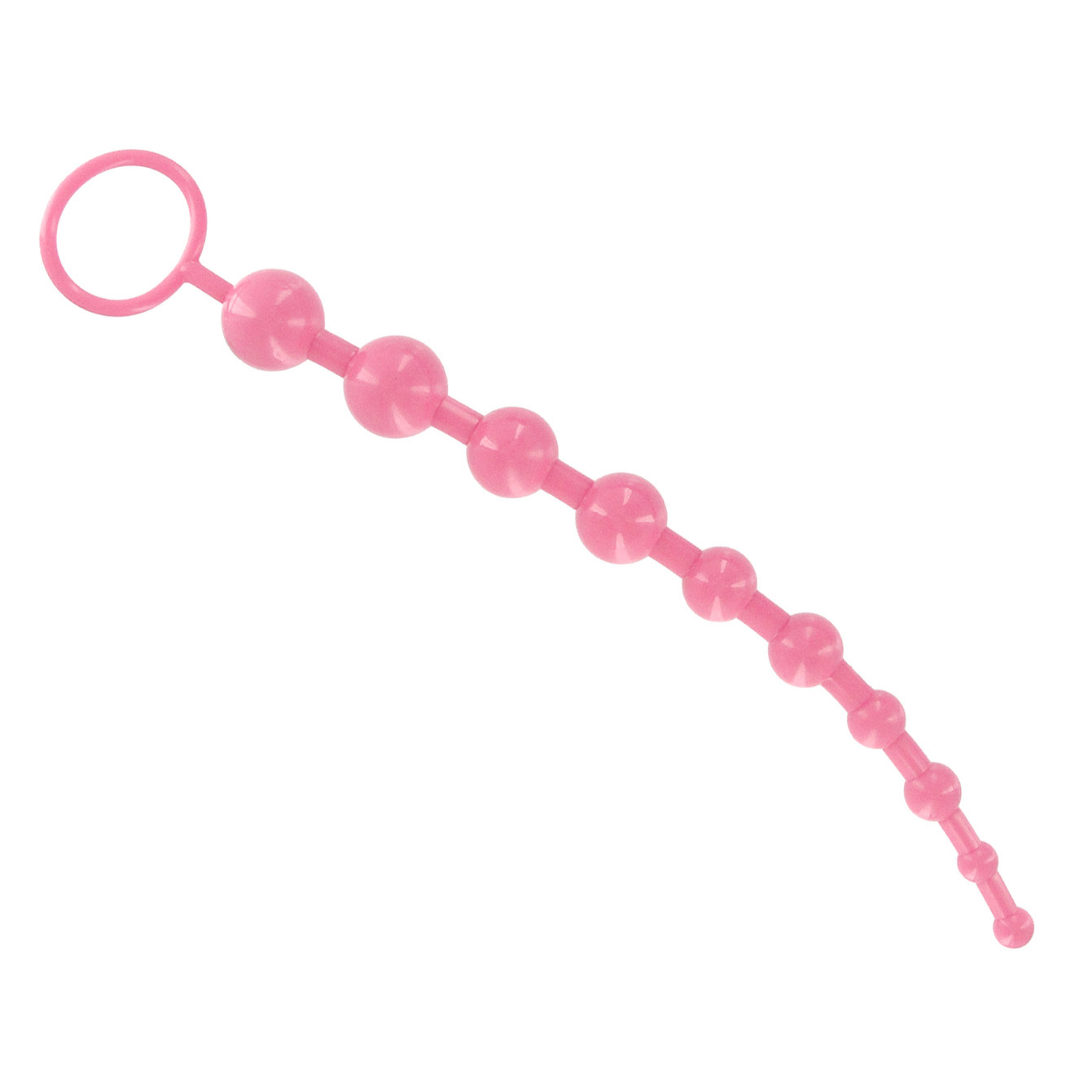 Ready to start experimenting with anal beads? This set of reasonably sized, graduated beads, linked together with a firm, flexible material is perfect for beginners. It allows lovers to try out a new experience without having to conquer an anal toy of overwhelming size. A convenient ring pull at the end allows for total control of insertion and easy retrieval for when you get ready to move on to other activities. Start with a couple of the smaller beads and see if you can work up to the whole string!