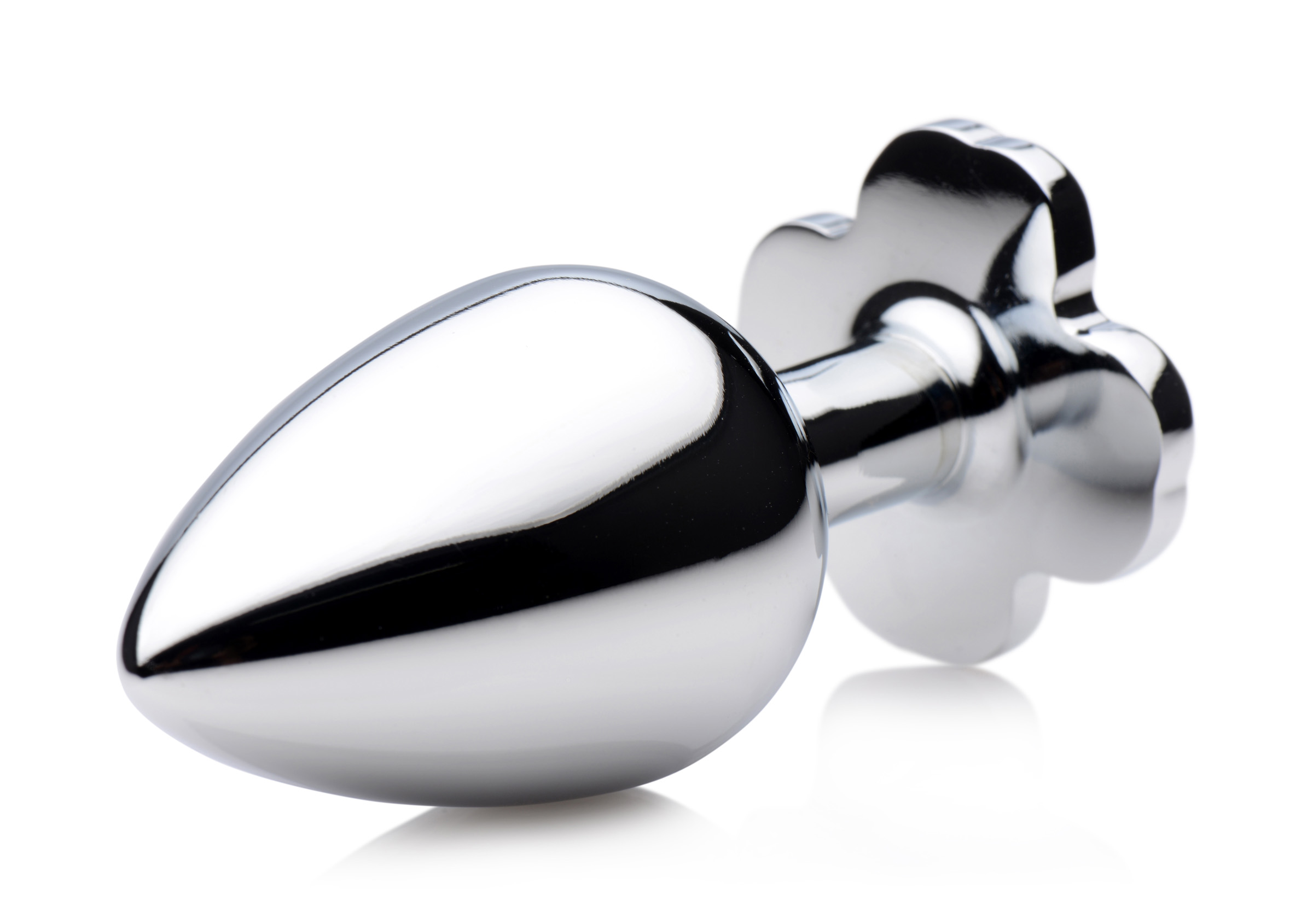 Make that booty get lucky with this medium metal anal plug with a clover jewel design at the base! Pop this lucky charm in your pot-o-gold to appreciate the comfortable weight inside your body, thanks to the nickel-free aluminum alloy material. Great for temperature play, you can warm it or cool it in water before insertion. The attractive shape of the base will surprise your partner when you bend over. Shake that shamrock! Use with any lubricant of your choosing and clean after use with mild soap or toy cleaner.