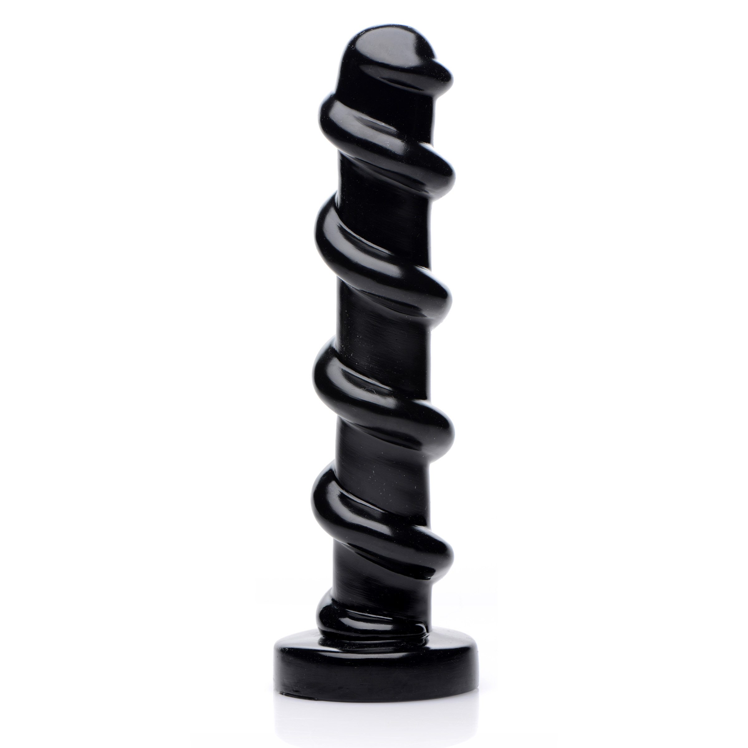 Can you fit this screwed up dong inside you? Made of a slippery, sleek material, this unique dildo is compatible with silicone or water-based lube so that it can easily and comfortably be twisted into your body. Experience the expansion as the thick ridge massages your inner walls. How much of this hardware can you handle? Clean after each use with mild soap and warm water.