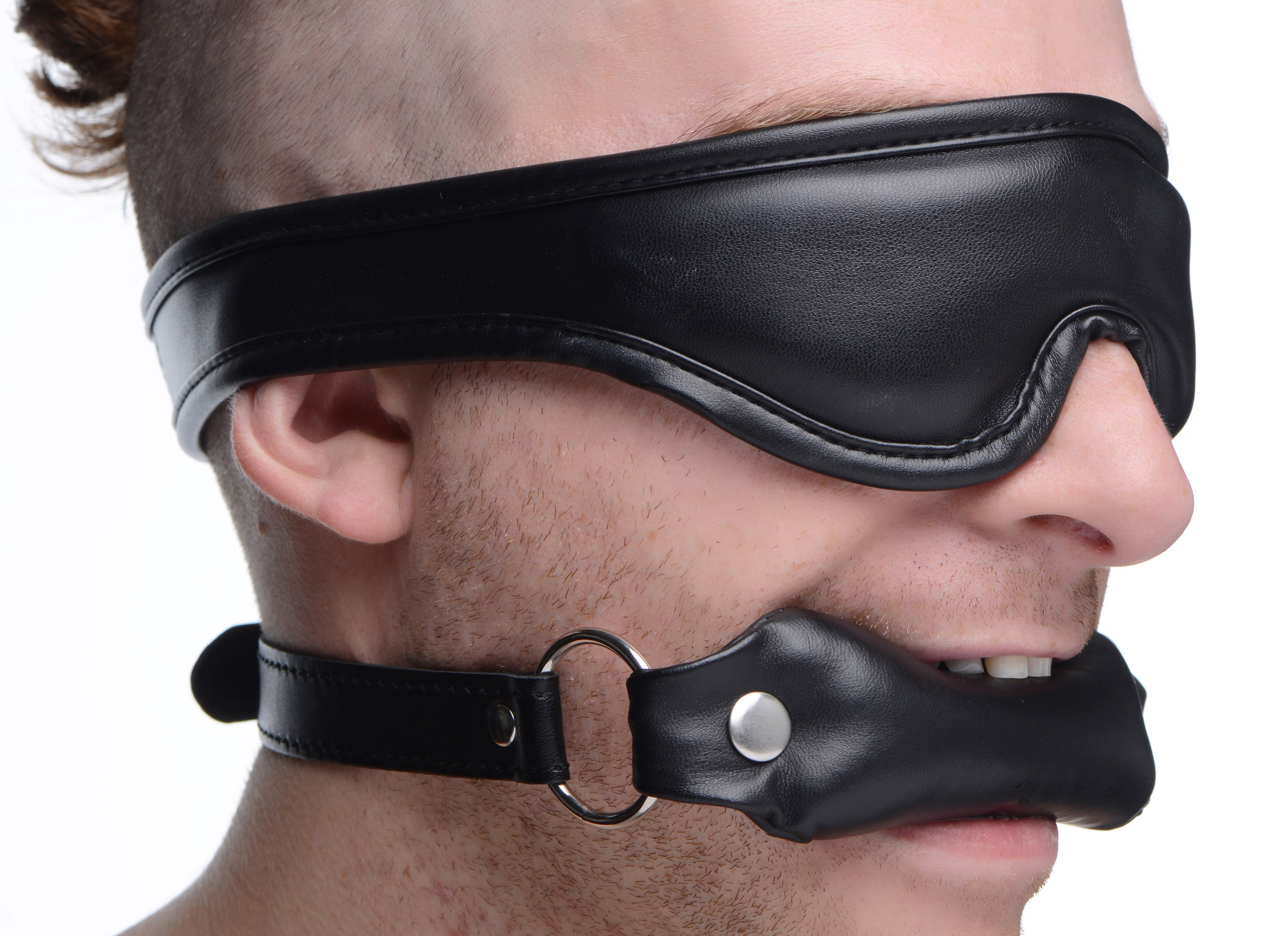 Measurements: Blindfold adjusts from 19.5 to 24.5 inches in circumference. Gag is 1.65 inches in diameter and adjusts from 18.5 to 25.5 inches in circumference