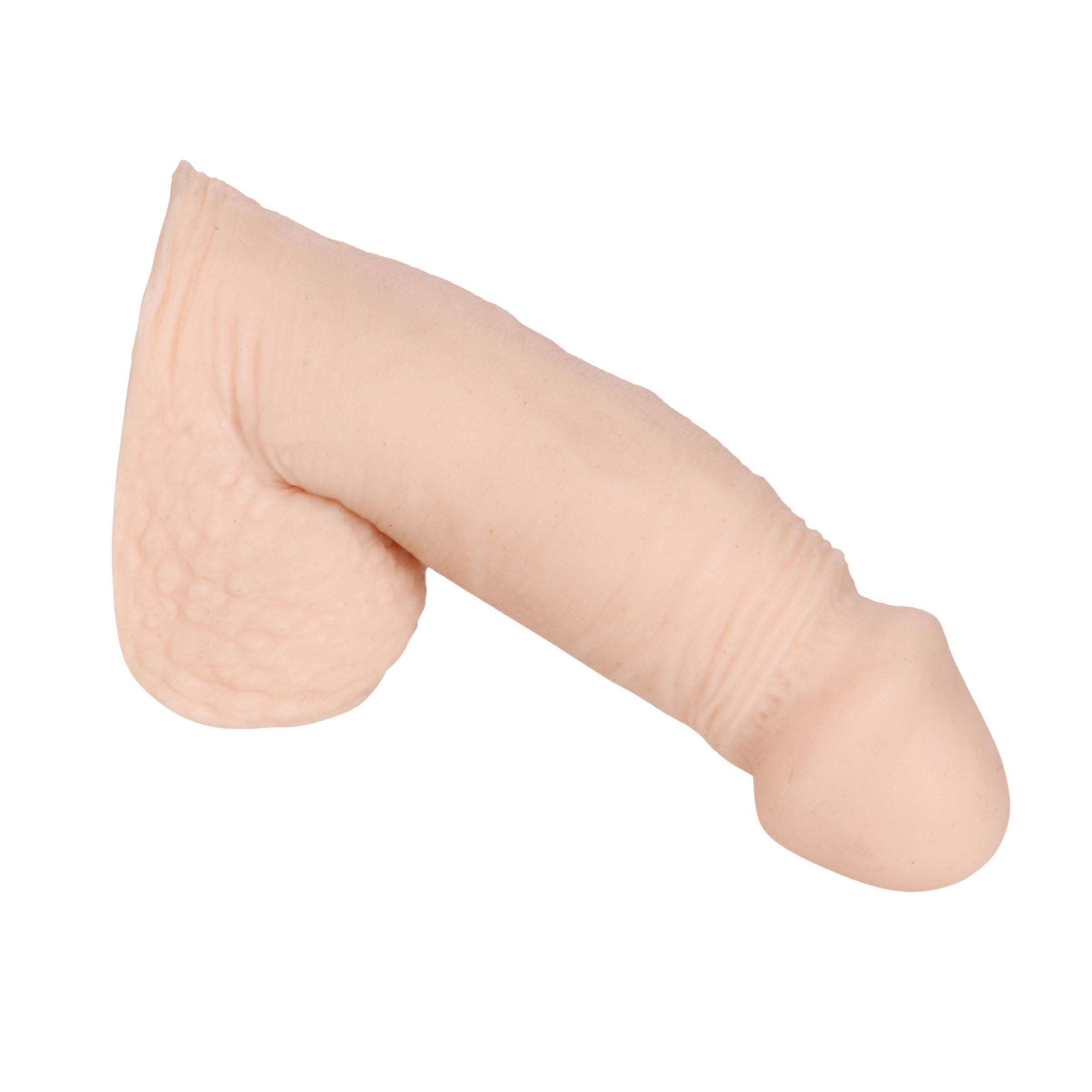 Put a banana in your hammock with this ultra realistic packer Now you can sport a fat bulge and show off your goods, with this soft, stretchy, realistically textured cock. It feels just like a flaccid penis, and looks so real that you will feel you were born with it. Use it in your favorite pair of packing briefs or jock, or in a strap on harness to keep it in place. It is soft and comfortable, designed to be worn all day. Maintenance free, just slip it into place for a boost of masculine power. Perfect for wearing under clothes, or changing at the gym. No matter how you use it, this great softie will make you feel like a king Measurements: 5.75 inches in total length, 5 inch shaft length, 1.5 inches in diameter. Material: TPR. Color: Flesh. Note: Briefs or harness not included