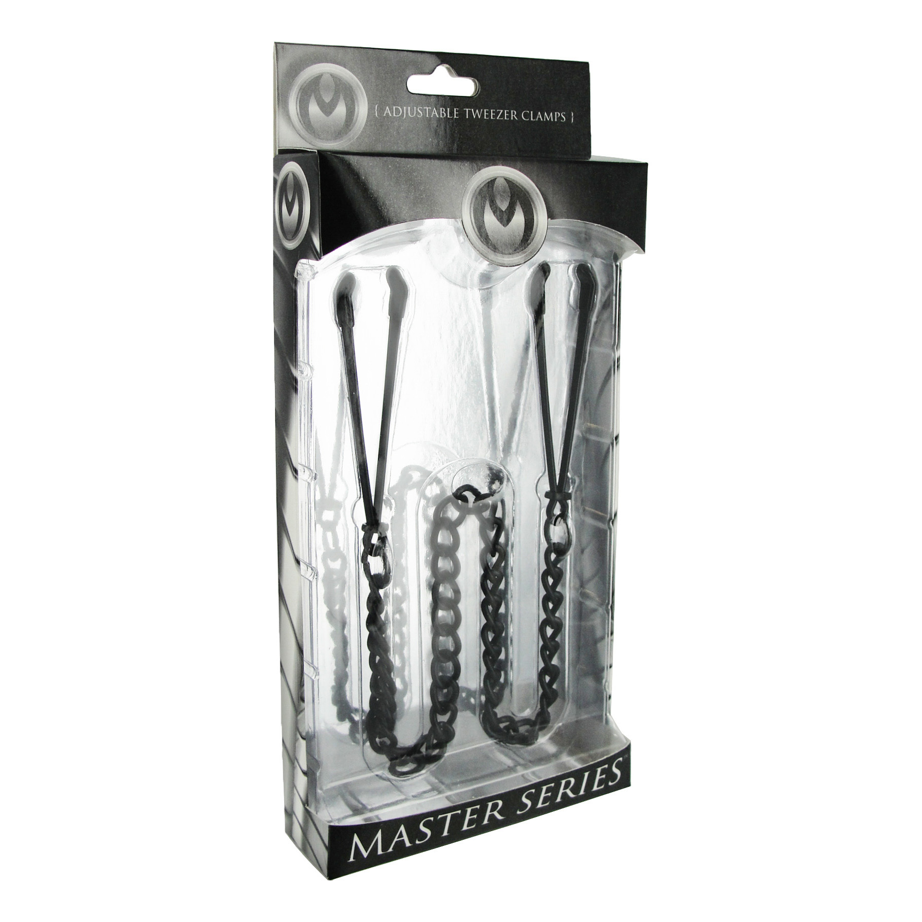 Look stylish while using these Black Nipple Tweezer Clamps. Made for nipple play, also works great on other parts of the body, these clamps go around each nipple and squeeze. You can control the amount of pressure you want by simply sliding either up or down on the ring. Tease and play with them as they try and anticipate just how much pressure you'll give them.
