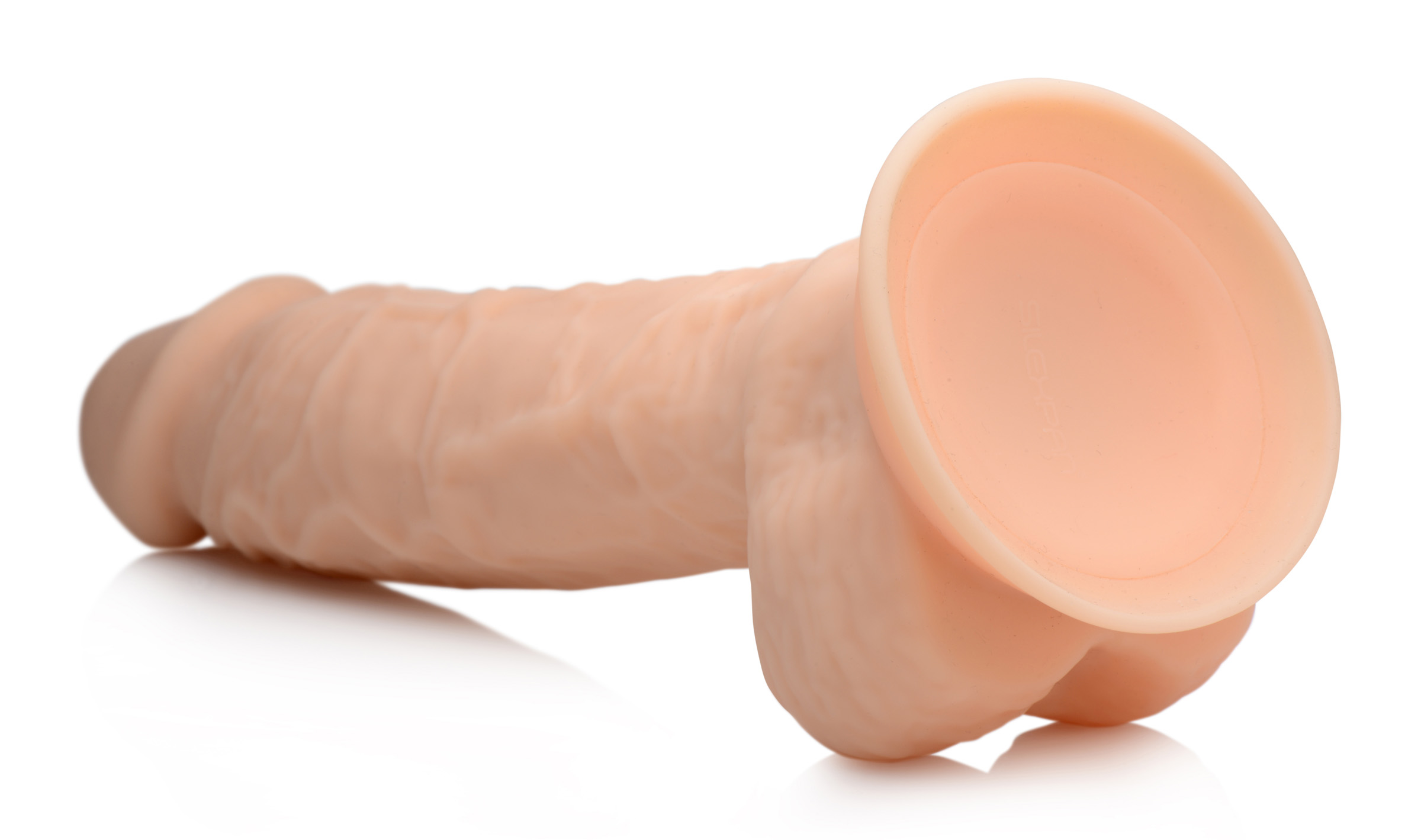 Eight and a half inches of solid schlong! This simply luscious dildo is made with ultra-premium silicone to give you a lasting pleasure tool that you can trust. The defined head and bulging veins make this dong look and feel like the real thing... or maybe even better! The strong suction cup base sticks to just about any flat surface so that you can it for a ride. You can even warm it up or cool it down for a variety of sensations. The hypoallergenic material is easy to clean with mild soap or a toy cleaner, but it is also top-rack dishwasher safe and sterilizing with 3 minutes of boiling. Use with only water-based lubricants. Curve Toys is known for their ultra-realistic bio-skin formula used to create the best dildos and adult toys in the world. They manufacture their adult replica products with USA materials that are body-friendly, phthalate-free, and top-grade. Their proprietary blend of bio-skin is mixed in-house, making them a leader in sexual health. All products are inspected for superior functionality so that they represent the value, quality, and innovation from the factory to the bedroom. Staffed by experts with over 60 cumulative years in the adult manufacturing, Curve Toys is the perfect combination of passion, creativity and experience; in short, we know pleasure. Measurements : Overall Length 8.5 inches, Insertable Length 6.75 inches, Circumference at Head 5.12 inches, Circumference at Base 5.12 inches Materials : Silicone Color : Light