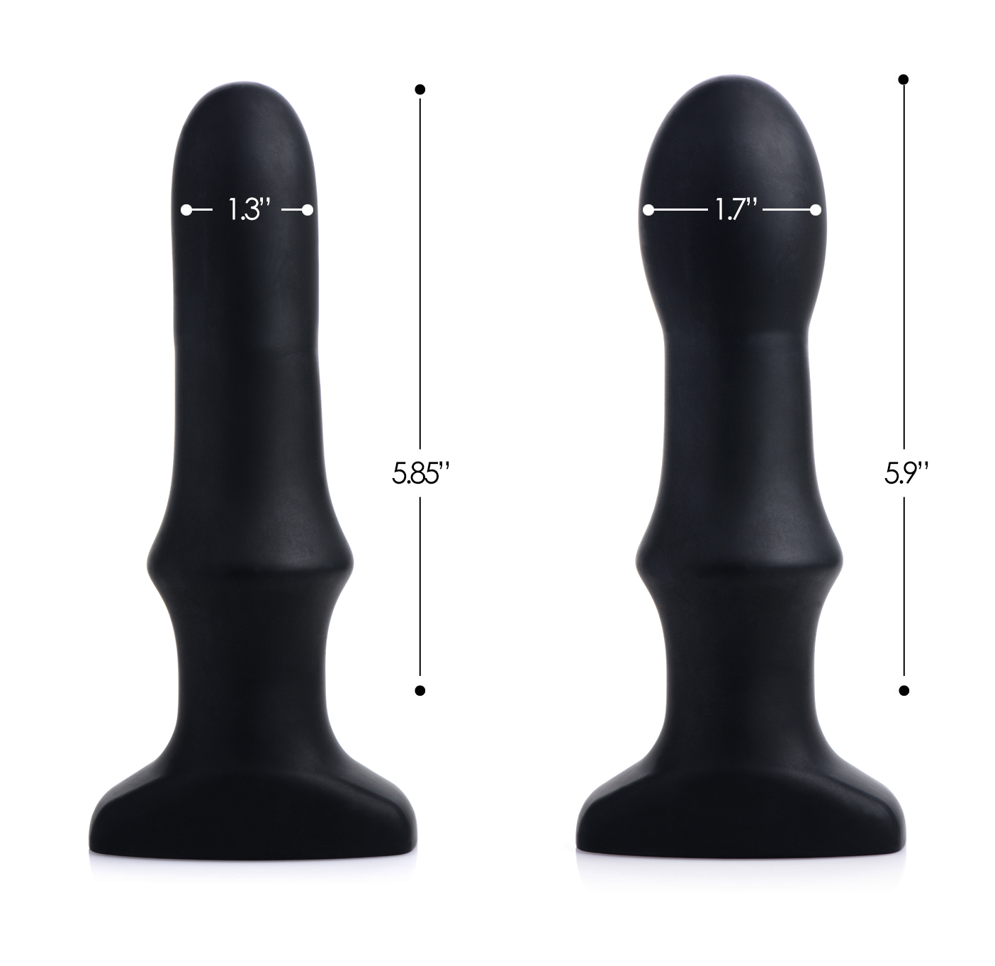 Measurements: 6.75 inches in total length, 5.85 inches insertable length, 1.85 at widest insertable diameter, 1.25 inches at narrowest diameter.