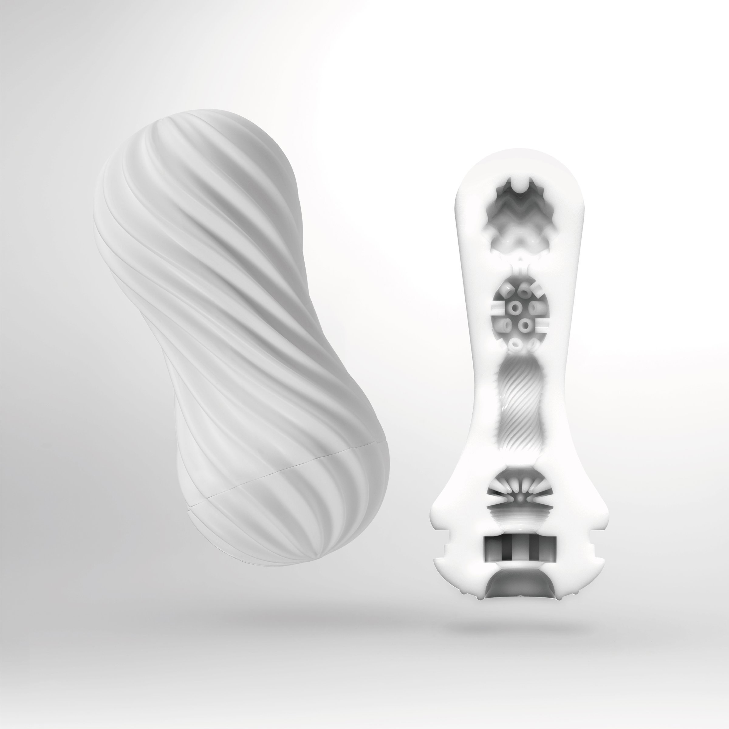 Lose yourself in flexible spiraling sensations Find release with the TENGA FLEX. Our latest malleable material has allowed us to create a brand new sensation The FLEXs spiral-ribbed casing has created spinning stimulation. Cover the air hole at the top of the item during use, and the FLEX will wind and unwind, creating a spiraling movement Additionally, the malleable casing allows you to squeeze, twist and grip the item to directly change the stimulation to suit your desire Silky white features softer internal details with gentle spiraling ribs that embrace with delightful suction. Measurements: 7.5 inches in length, 3 inches in width. Material: Elastomer, PP. Color: White. Note: Includes a lubricant sample.