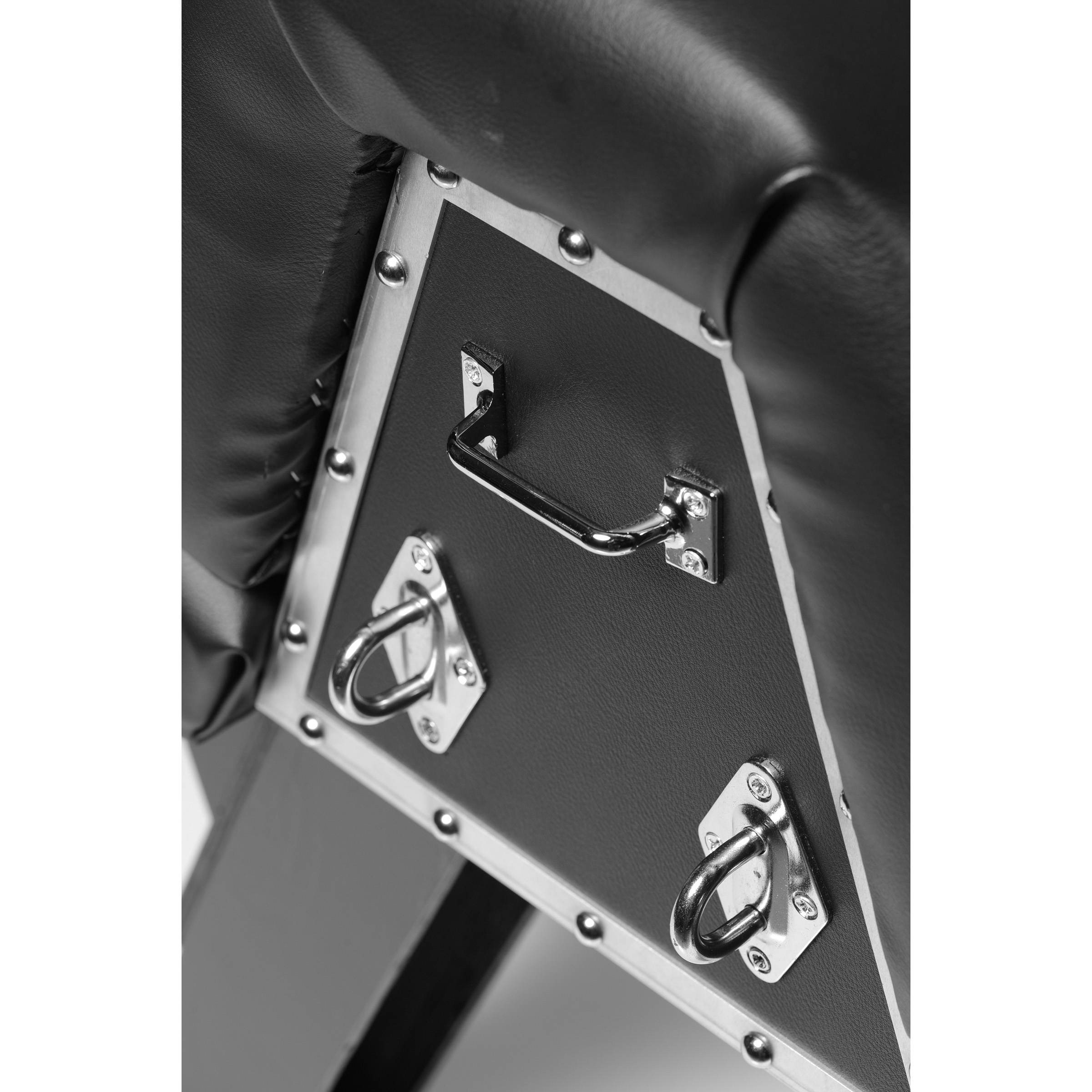 This exquisite bondage horse is sturdily built and made to last. The bench comes partially assembled- no confusing parts or manuals. Designed so that your partner, once on top, is perfectly positioned for whatever you have in mind. There are sturdy rings at the front and back, to which you can attach ropes, cuffs, or any sort of restraint. The outer material of the bench is non-porous and makes for easy clean-up, and resists any fluids or staining. This is an exceptional bench and a must-have for any true bondage enthusiast. It is sure to be one of your favorites for years to come!