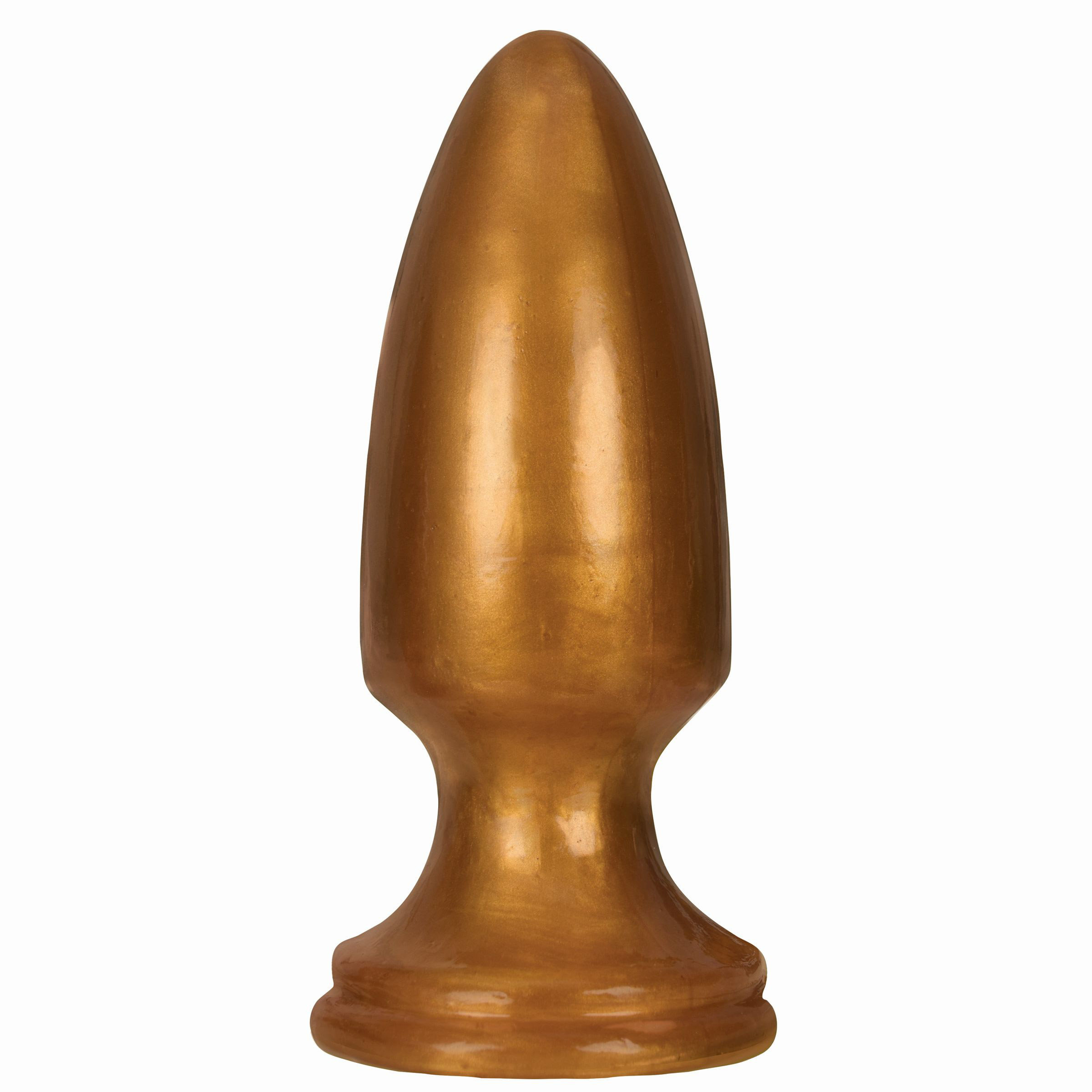 Take on a sleek and silky anal plug that provides a comfortable stretch. This splendidly smooth anal plug is guaranteed to provide the royal treatment The seamless design makes for a pleasant penetration that will fulfill your cravings. This sleek plug features a wide, flared suction cup base that stays firmly in place. Made of enhanced PVC, this plug is durable, pliable, low maintenance, and easy to clean. Use with water-based or silicone lubricant. Curve Toys is known for their ultra-realistic bio-skin formula used to create the best dildos and adult toys in the world. They manufacture their adult replica products in the USA with only body-friendly, phthalate-free, and top-grade materials. Their proprietary blend of bio-skin is mixed in-house, making them a leader in sexual health. All products are inspected for superior functionality so that they represent the value, quality, and innovation from the factory to the bedroom. Staffed by experts with over 60 cumulative years in the adult manufacturing, Curve Toys is the perfect combination of passion, creativity and experience; in short, we know pleasure. Measurements: 5.5 inches in total length, 4.25 inches insertable, 2 inches in diameter. Material: Phthalate-free PVC Color: Gold Note: Made in the USA