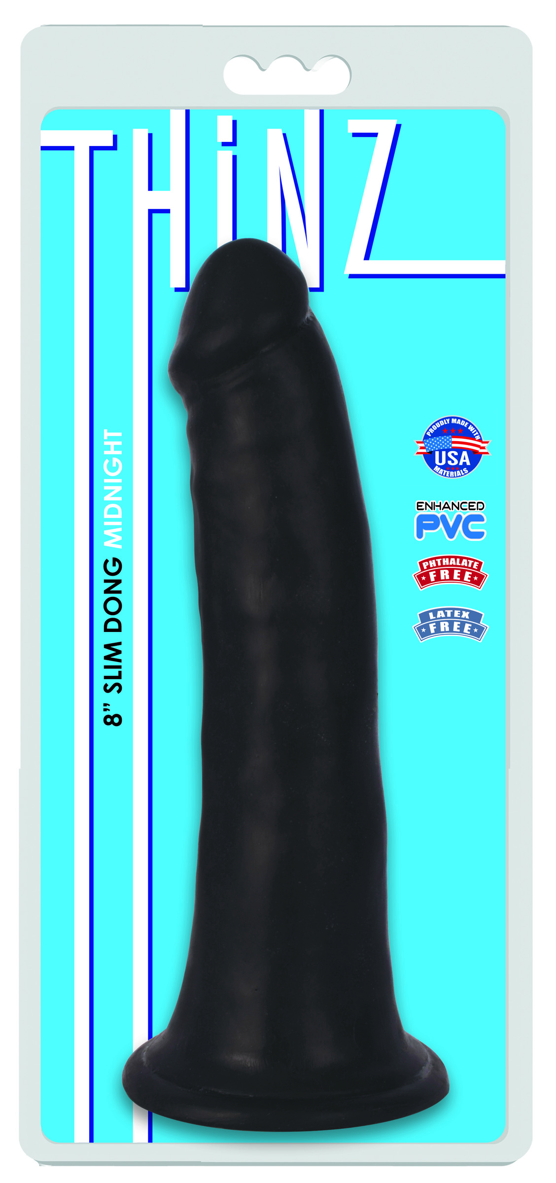 Super slim and sure to please, this Thinz Dong is perfect for those who desire a toy on the comfy side of size! If your holes are tight and shallow, this is the perfect dildo for you - the lifelike design is handcrafted for an appealing appearance and lifelike texture, while the ultra premium material provides a satisfying fill without an uncomfortable stretch. Each dong is made with ultra premium enhanced PVC, sourced from the USA for high standards of quality. The firm yet pliable nature of these shafts provides the perfect combination of comfort and pleasure for all levels of play! Body safe, latex free, and phthalate free for a fulfilling body-safe and worry-free session. The sturdy suction cup makes this dildo harness compatible so you can strap-on and get down with your lover with a dildo that is gentle and forgiving - the thin body makes it easy for you to really thrust into your partner without worry of hurting them. Thinz dildos are low maintenance and easy to clean so you can focus on your fun! Curve Toys is known for their ultra-realistic bio-skin formula used to create the best dildos and adult toys in the world. They manufacture their adult replica products with USA materials that are body-friendly, phthalate-free, and top-grade. Their proprietary blend of bio-skin is mixed in-house, making them a leader in sexual health. All products are inspected for superior functionality so that they represent the value, quality, and innovation from the factory to the bedroom. Staffed by experts with over 60 cumulative years in the adult manufacturing, Curve Toys is the perfect combination of passion, creativity and experience; in short, we know pleasure. Measurements : 8 inches overall length, 7.5 inches insertable length, 2 inches in diameter Materials : Phthalate-free enhanced PVC Color : Black