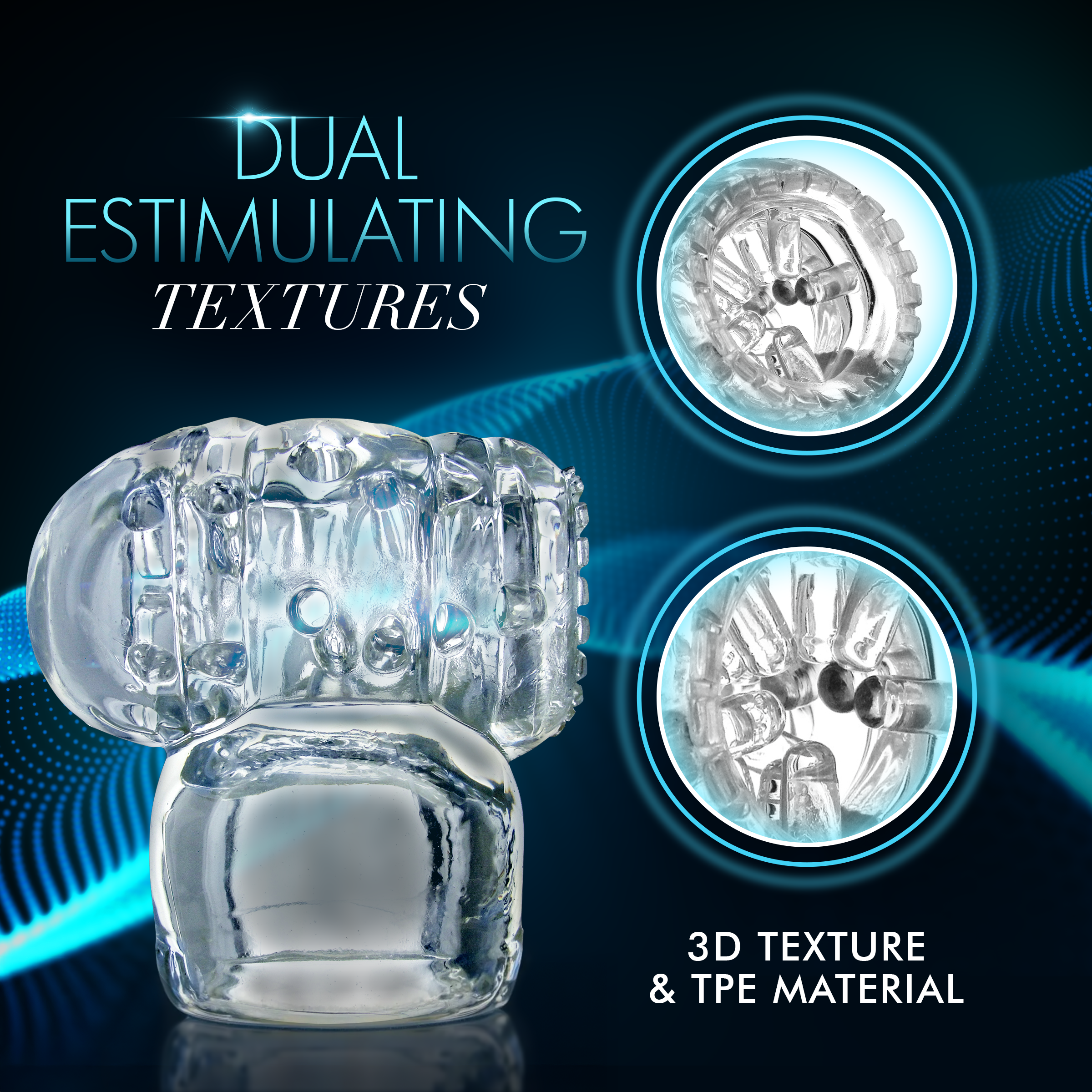 The Vibra Cup is bound to please your rod with its teasing inner texture. Add to this some powerful vibration and you are ready for one thrilling ride The Vibra Cup is so stretchy that it fits most wand massagers. Simply attach this pleasure upgrade to your favorite wand massager and place it over the head of the penis. The vibrations from the wand will transfer to the attachment as you stroke back and forth. Durable and easy to use, this stroker attachment is a front runner for fully gratifying solo endeavors Measurements: Stroker Cup is 3.38 inches long, 2.37 inches wide, Material: TPR, Color: Clear, Note: Wand Massager not included