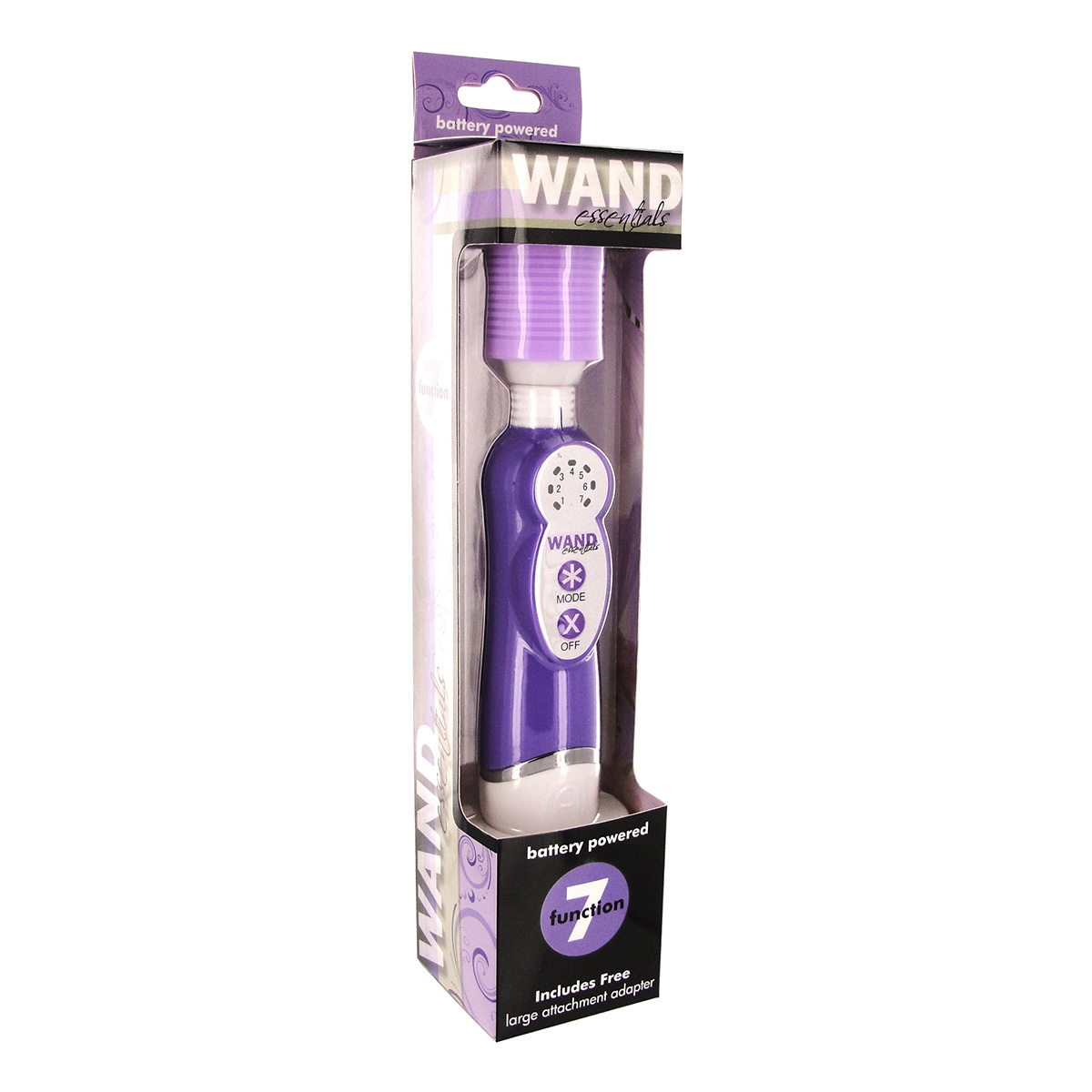 The Wand Essentials 7 function battery powered portable massager is great for releasing tension and deep tissue massage. Do not let its portable size fool you, this massager was engineered with a mighty powerful motor. With seven distinct vibration modes ranging from a steady soft flutter to a climactic crescendo pattern, you will be able to experiment and explore the mode that best fits your mood. A free adapter is included that makes this wand work with most larger wand attachments for even more pleasure possibilities, and with no cords to get in the way, you can indulge anywhere you like Measurements: Wand is 7.88 inches long, Massage Head is 1.39 inches in diameter, Large Attachment Adapter is 2.31 inches in diameter, Material: TPR, ABS, Color: Purple, Note: Requires 4 AA batteries, not included