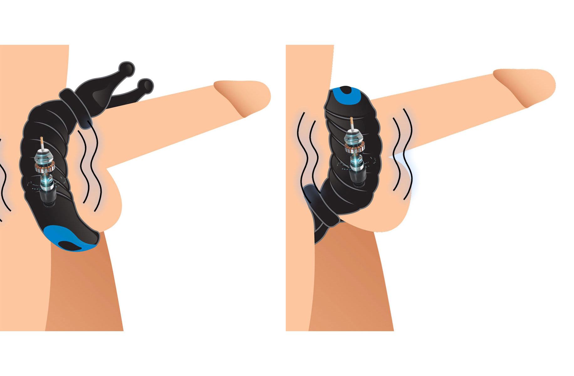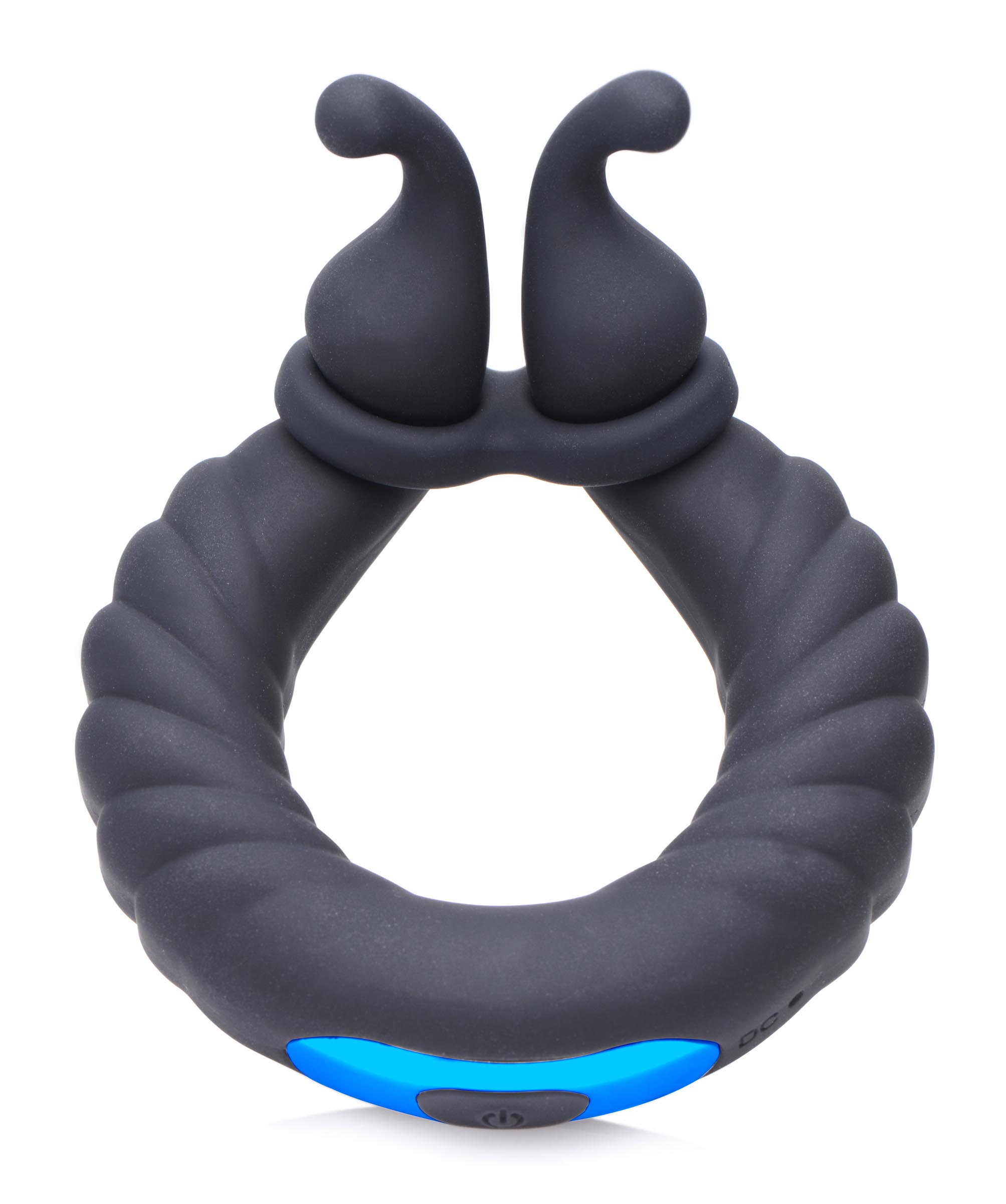 This ribby cock and ball ring is built for versatile vibes! The pair of flexible prongs is designed to flick and vibe on your partners clitoris, labia, or your own underside - choose from 10 unique vibration patterns and see what gets you hard and stimulates your partner best.