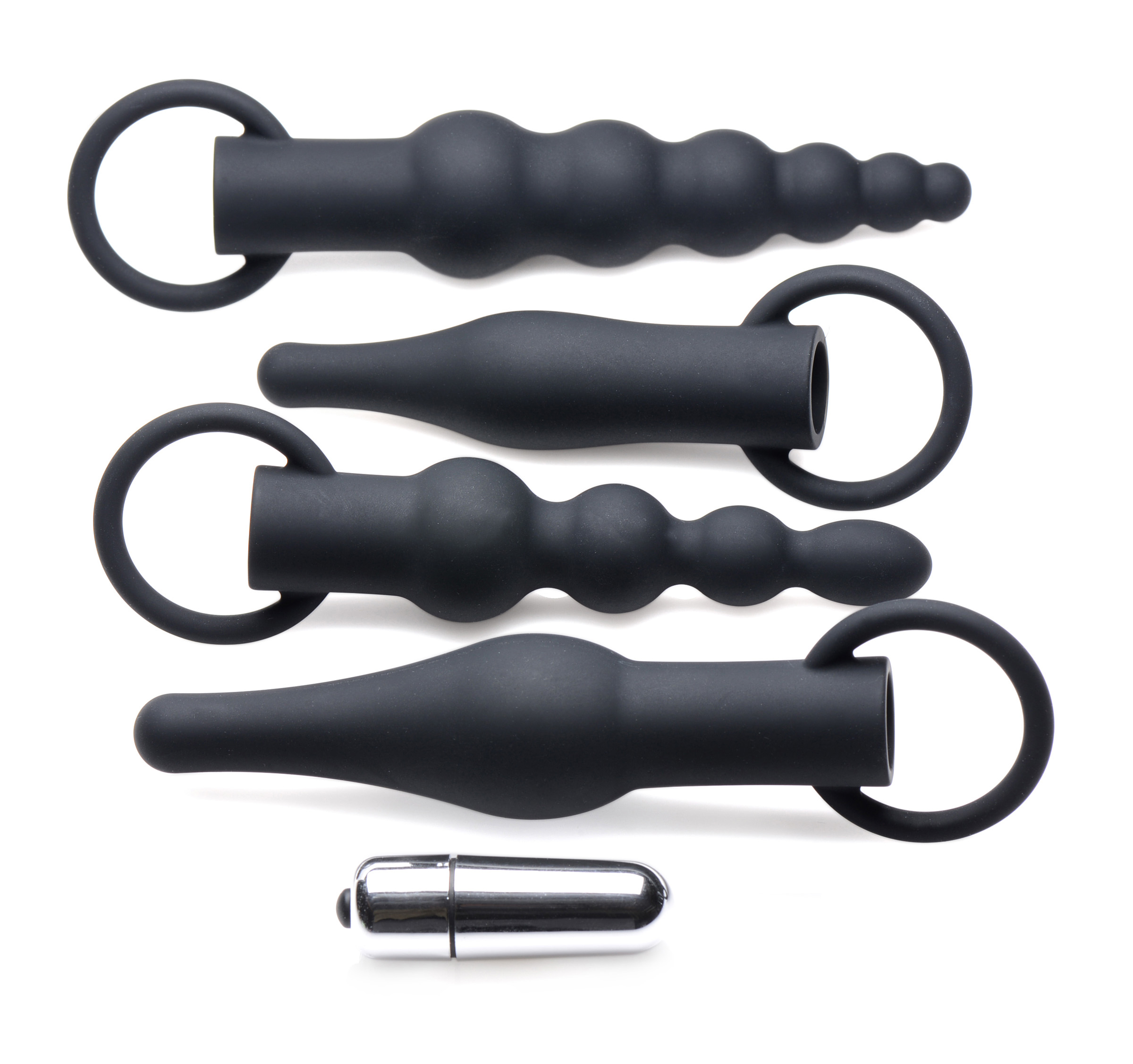 Each plug contains a hollow cavity for the included bullet vibe – choose from 3 levels of vibration intensity for increased anal pleasure during your training or warmup! Add the bullet to your preferred size and shape and turn on the buzzing pleasure.