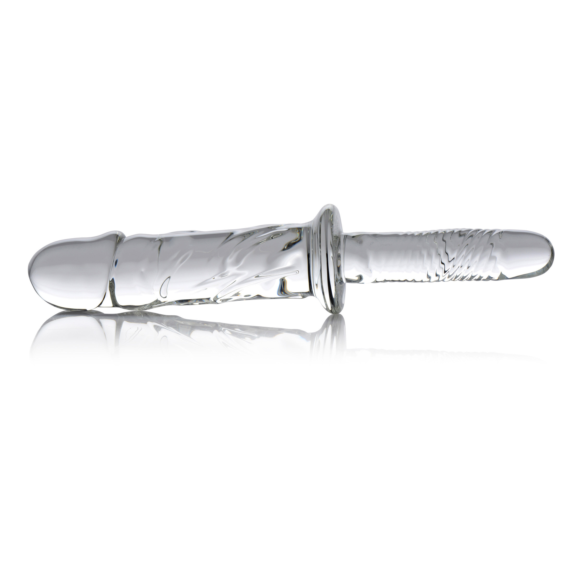 Shove this textured glass dildo into your eager hole, or play with a partner! Designed with a grooved handle, this rod allows you to take a secure grip and easily thrust at your desired length and pace. The realistic shape is complimented by protruding ridges that will offer a unique internal massage. Made of shatter-resistant glass, this shaft is rock-solid and heavy to create a greater sense of fullness. Experiment with temperature play by submerging it in hot or cold water prior to use. This hypoallergenic material is non-porous, allowing for thorough sterilization with mild soap and warm water. Compatible with all lubricant types.