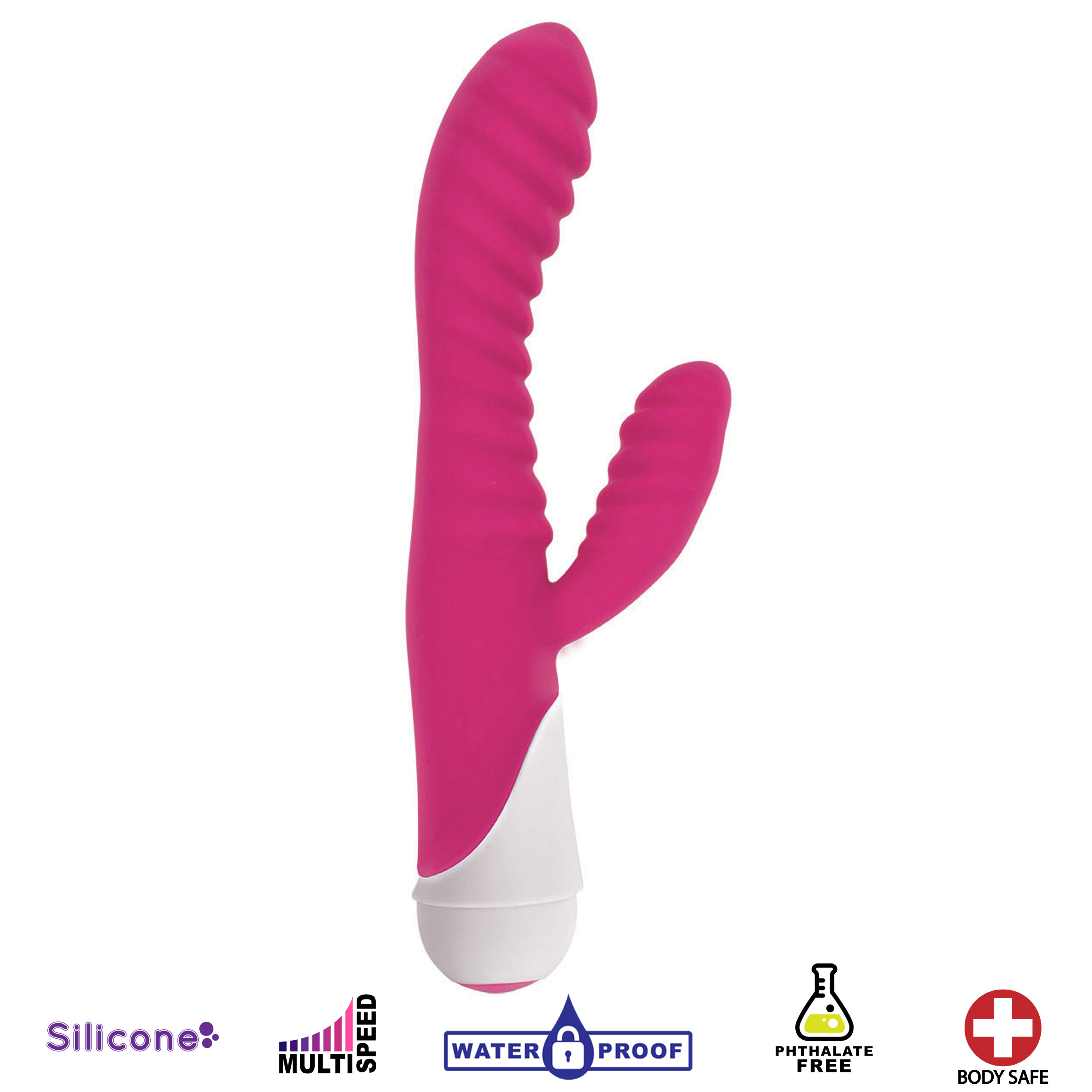 Silicone material, dual stimulation, ribbed shaft |