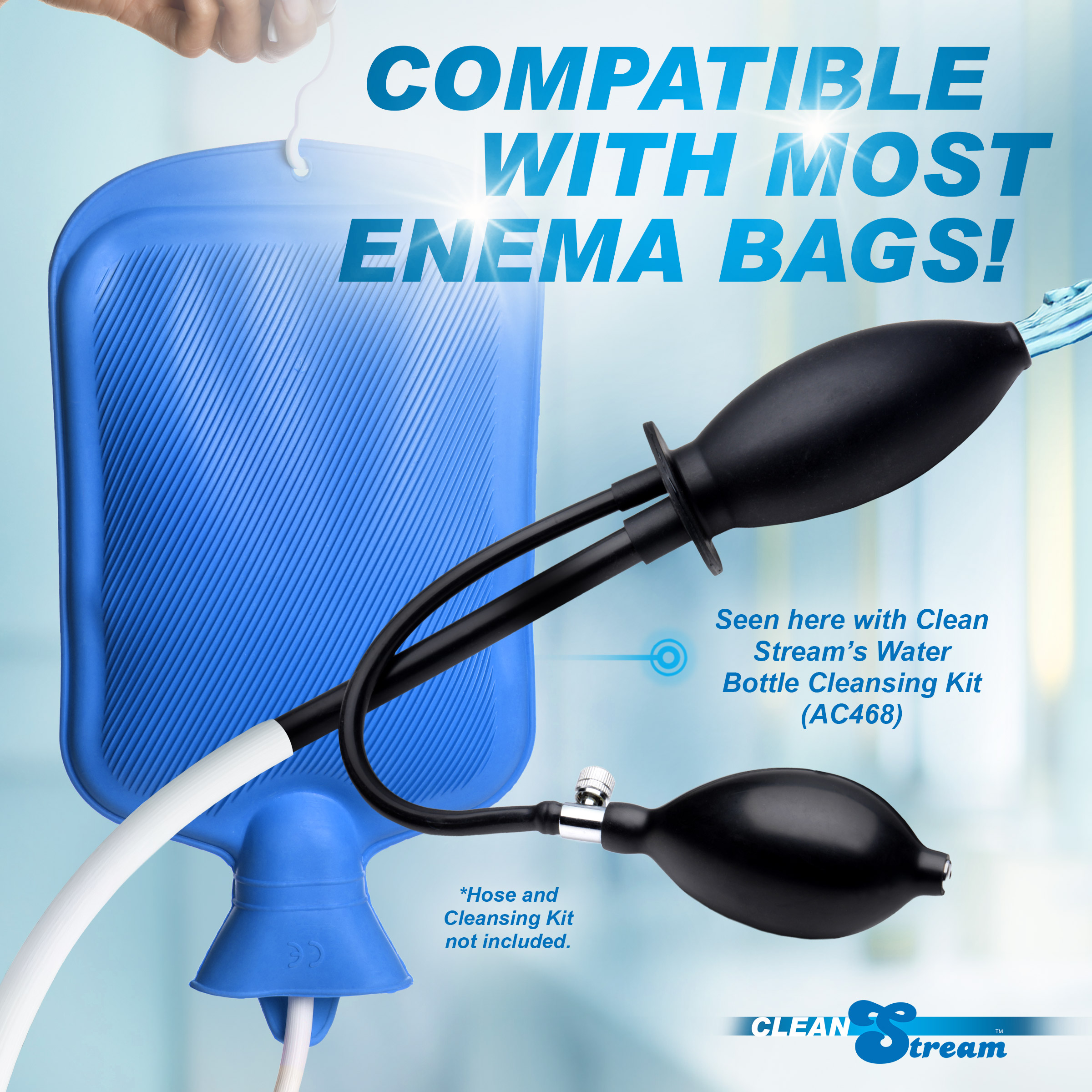 This butt plug has a rubber tube running through it. Fluids can pass through while it is inflated! Once the plug is inserted and inflated the large rubber hose can be hooked to an enema bag. When the time comes to administer the enema, the fluid will flow through the enema butt plug into the colon. The inflatable plug prevents pushing out the plug and the enema until the desired time arrives.