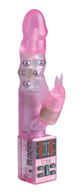 Decadent Indulgence provides an infinite array of vibrating patterns.It features 3 independent functions of shaft rotation and clitoral vibration, each with 8 levels of intensity for over 100 patterns of pure indulgence The pinpoint nubby tickler stimulates the clit, while the fluttering wings caress the vaginal lips. Nine strategically placed heavy duty rotating pleasure beads in the center of the shaft will bring you to orgasmic bliss with three patterns of rotation and eight speeds of gyration. Measurements: 9.75 inches long with 5.5 inches of insertable length. The shaft is 4.5 inches in circumference. , Material: Hygienically superior TPR. , Note: Uses 4-AA batteries, Not Included.