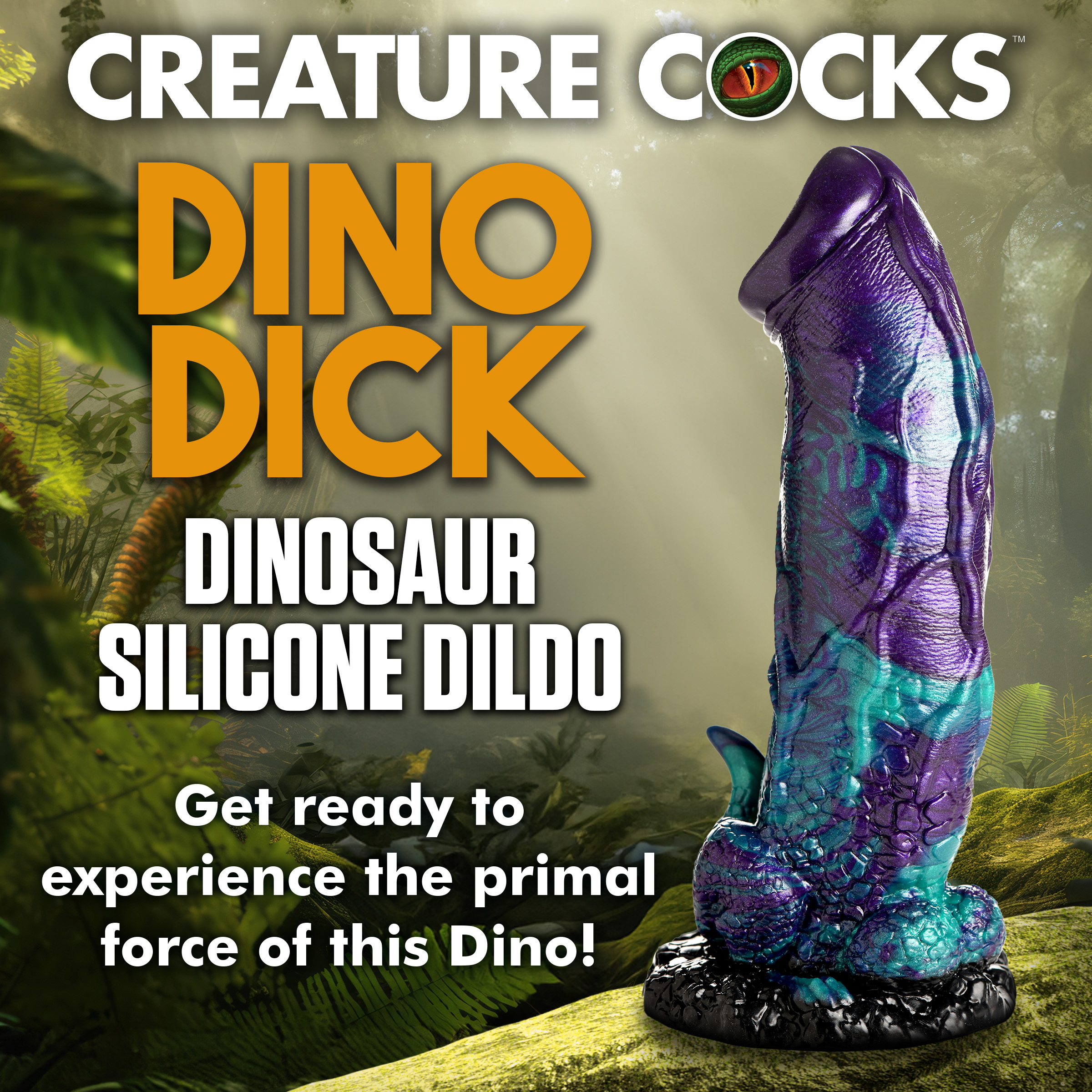 With beautiful, glittering blues, blacks, purples and teals, this Dino dong is about to outshine your other toys! With a massive, mushroom-tip head, you'll enjoy every time you pop it inside! The curved shaft has prominent veins on one side and a smooth ridge on the other. At the base are little dinosaur legs, a curved tail and a small pair of balls. It's as fun to look at as it is to ride! The wide base provides powerful suction so you can go hands-free by placing it on any flat surface to keep it in place. You can also combine it with a compatible strapon harness for pegging play! Made out of premium, phthalate-free silicone, it has a firm core and soft, silky surface. Explore every sci-fi, fantasy, roleplay or cosplay scene you want with this epic adult toy! Use only with water-based lubricants for best results. After play is over, wash the dildo with warm water and soap and use a toy cleaner to spray clean. Wipe dry and store in a cool, dark place out of direct sunlight. The helicopter drops you and your team off at the base camp. It's your job to explore this unknown and unexplored island. It's lush and green with a tropical climate. The sweat beads on your brow. "I'm going for a solo walk, guys. I need to stretch my legs after that long ride!", you yell back at your team who are staying at camp. After such a long time cramped in small aircrafts, you are eager to explore and be alone. After about an hour of walking you find a small river and decide it's time for a rest. You take off your boots and clothes and decide to cool off and wash away the sweat and grime from your body. The water feels cold and icy, but it wakes you up and refreshes you. You run back to shore, leaving the water, and lay on your clothes and let yourself air dry in the sun. After not too long, something wakes you. You hear a shuffling sound and see that something is caught in your clothes, and crawling under it. "It must be some small animal." you say to yourself, but as soon as you lift up your clothing to see you cry out in shock! It is a… lizard of some sort… but with a very odd looking head and neck! It's almost as if it was meant to look like a human dong! "What in the world kind of creature are you??" A nudge to your side alarms you again and you sit straight up to find a few more of these strange tiny dino dongs hopping around and nudging you. It seems odd and cute until… you see there are many, many more! They start to swarm you and then find their way on top of you, their little claws digging into your skin, and then wriggling their way between your thighs until, to your shock, they are inside you! You open your mouth to scream but another one hops inside your mouth! Before you know it, they've released a numbing saliva from their head, one that causes you to engorge and tingle, and these tiny pests have suddenly become a very big problem! Measurements : Overall length: 9.1 inches. Insertable length: 7.2 inches. Narrowest insertable diameter: 2.2 inches. Widest insertable diameter: 2.4 inches. Materials : Silicone Color : Blue, purple, teal, black Note : Use only with water-based lubricants for best results.