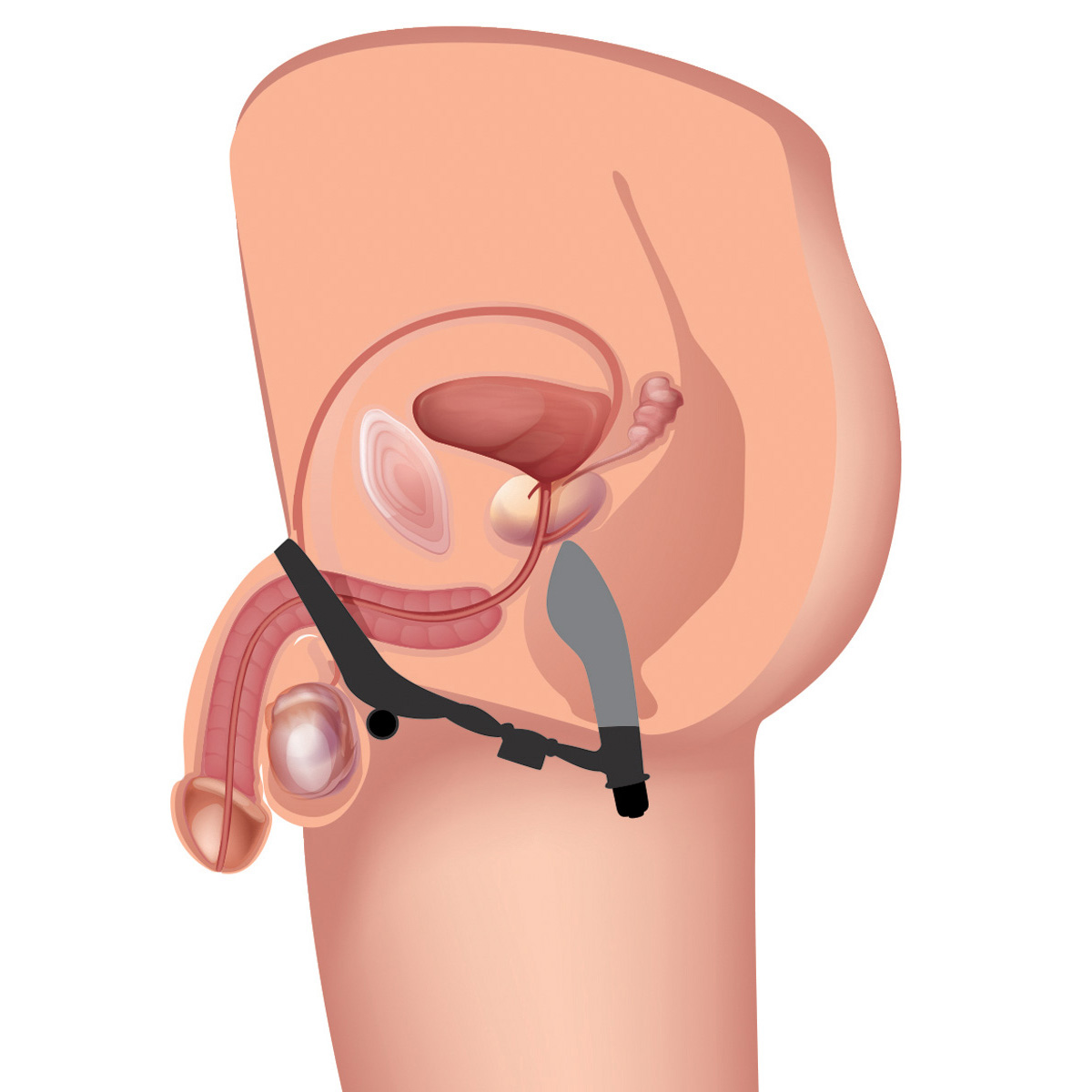 Penetrate your anus, buzz your perineum, and enhance your erection with this 3-in-1 vibrating pleasure tool! The anal insertion is perfectly shaped with a bulbed tip to provide prostate stimulation. Press the independent button to send a delightful humming straight up your ass. A second independent button on the narrow connecting portion will tickle your taint! Two small bulbs will apply a light pressure for an additional tease. Finally, the cock ring is perfect for pulling your cock and balls through for a tight squeeze that will make your erection stronger, more sensitive, and longer-lasting. A third bullet vibe sits on the bottom of the ring to thrum against your balls. Made of premium silicone, this triple stimulator is phthalate-free and non-porous. Clean and sanitize easily with soap and water. Not for use with silicone lube.