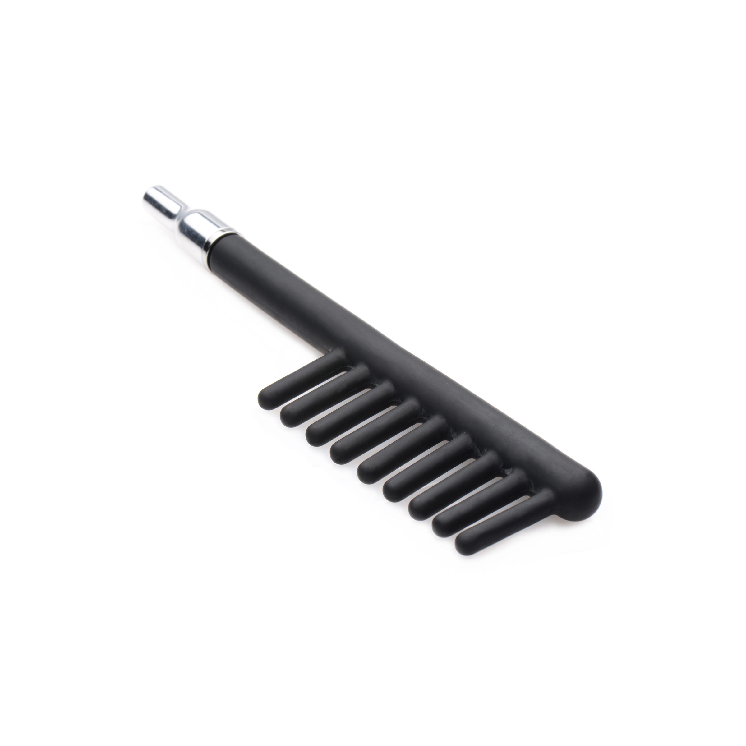 Forget about fragile glass and opt for an electrosex accessory that holds up against rough play and travel. If you have ever only used glass before in your Twilight wand, prepare to experience the sensual intensity of silicone! This soft and flexible comb plugs into your violet wand, spreading intense electro stimulation to whatever body part you choose via each of the 9 teeth. This extreme accessory offers estim intensity without the worry that handling delicate glass can bring, making it perfect for travel or rough play. The premium silicone is an intense conductor, and cleans easily after use. Compatible with the Zeus Twilight Violet Wand.