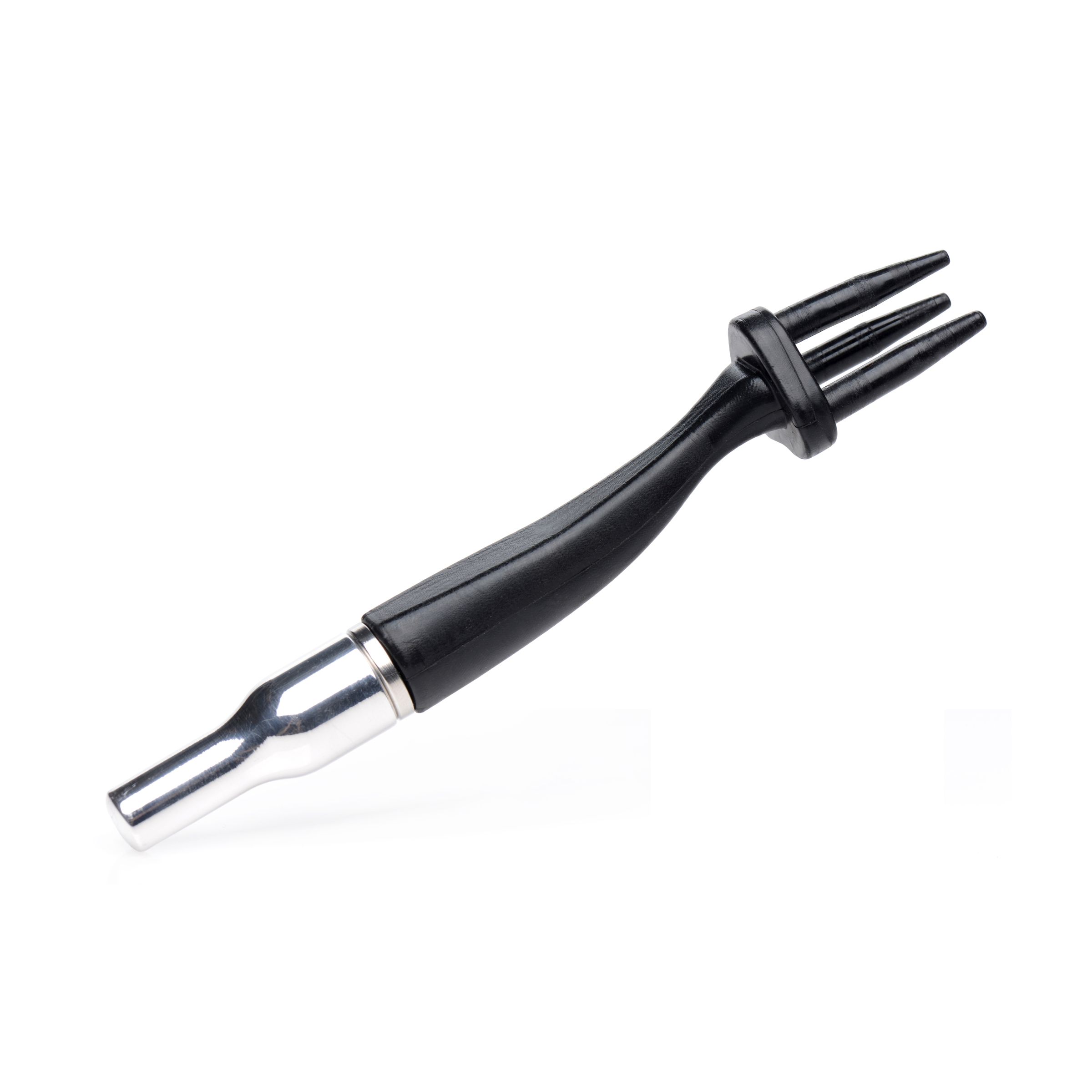 Four unique electrosex attachments in one shockingly convenient kit! Forget about fragile glass and opt for Violet Wand accessories that hold up against rough play and travel. If you have ever only used glass before in your Twilight Wand, prepare to experience the sensual intensity of silicone! The soft and flexible mushroom-shaped attachment plugs into your favorite violet wand, spreading intense electro stimulation to whatever body part you choose. The triple-pointed design of the trident allows you to tickle, tease, or torment with intense electro-stimulation! Deliver a sting and a shock with every swing from the flogger accessory. Even the gentlest stroke packs an electric jolt from each delicate, yet dangerous strand. Finally, the 9 teeth of the comb will each transmit a spark of pleasure as it travels down an arm, up a thigh, or anywhere else. Even the gentlest touch packs an electric jolt from your wand. These silicone attachments offer estim intensity without the worry that handling delicate glass can bring, making them perfect for taking on vacation or to a friends house, as well as getting wild in the heat of the moment. The premium silicone is an intense conductor, and cleans easily after use. Compatible with the Zeus Twilight Violet Wand.