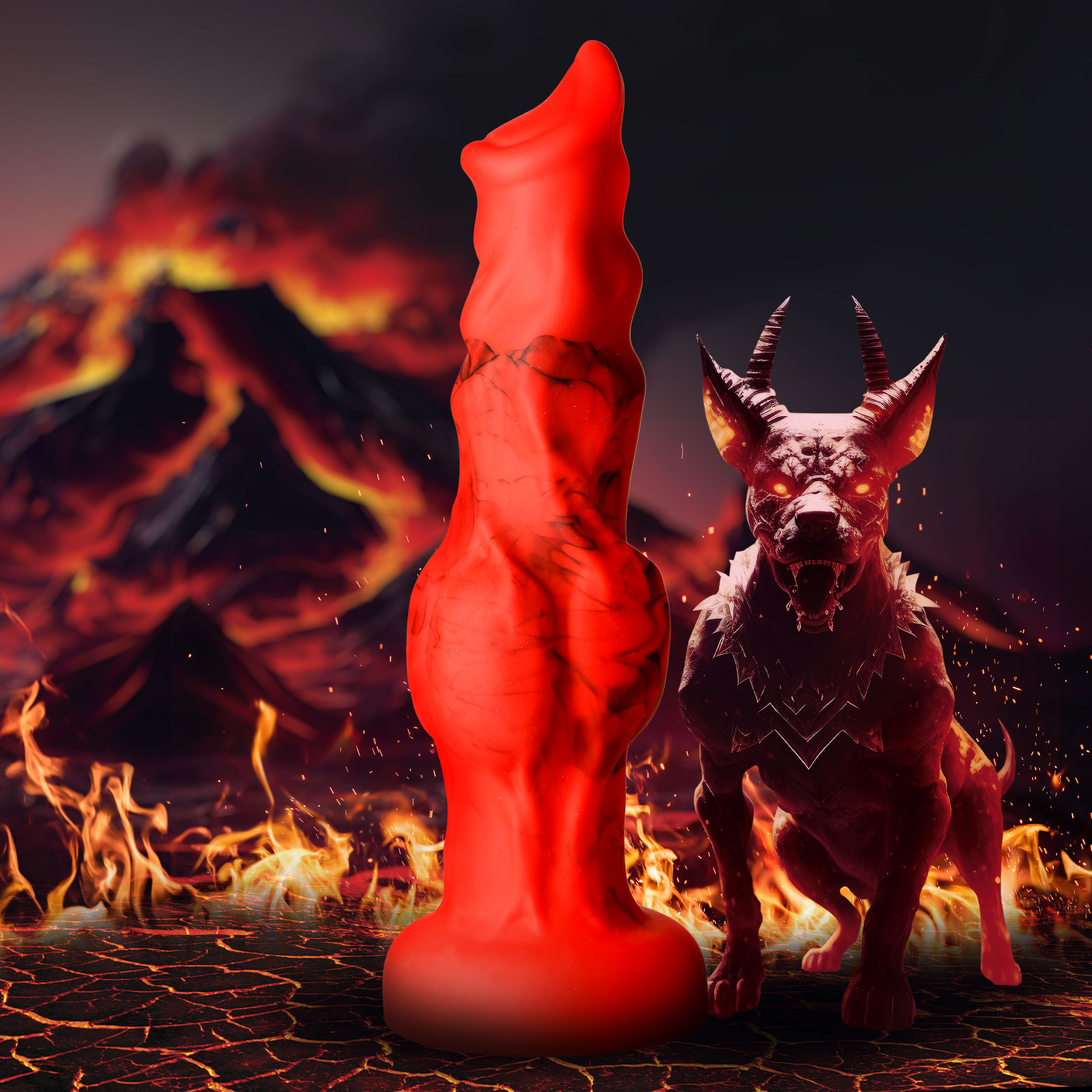 The smooth skin of this red hot shaft is accented by smokey black lines. Near the base are four bulging knots from a very hard Fire Hound! The tapered tip makes insertion easy. The wide base provides powerful suction so you can go hands-free by placing it on any flat surface to keep it in place. You can also combine it with a compatible strapon harness for pegging play! Made out of premium, phthalate-free silicone, it has a firm core and soft, silky surface. Explore every sci-fi, fantasy, roleplay or cosplay scene you want with this epic adult toy! Use only with water-based lubricants for best results. After play is over, wash the dildo with warm water and soap and use a toy cleaner to spray clean. Wipe dry and store in a cool, dark place out of direct sunlight.