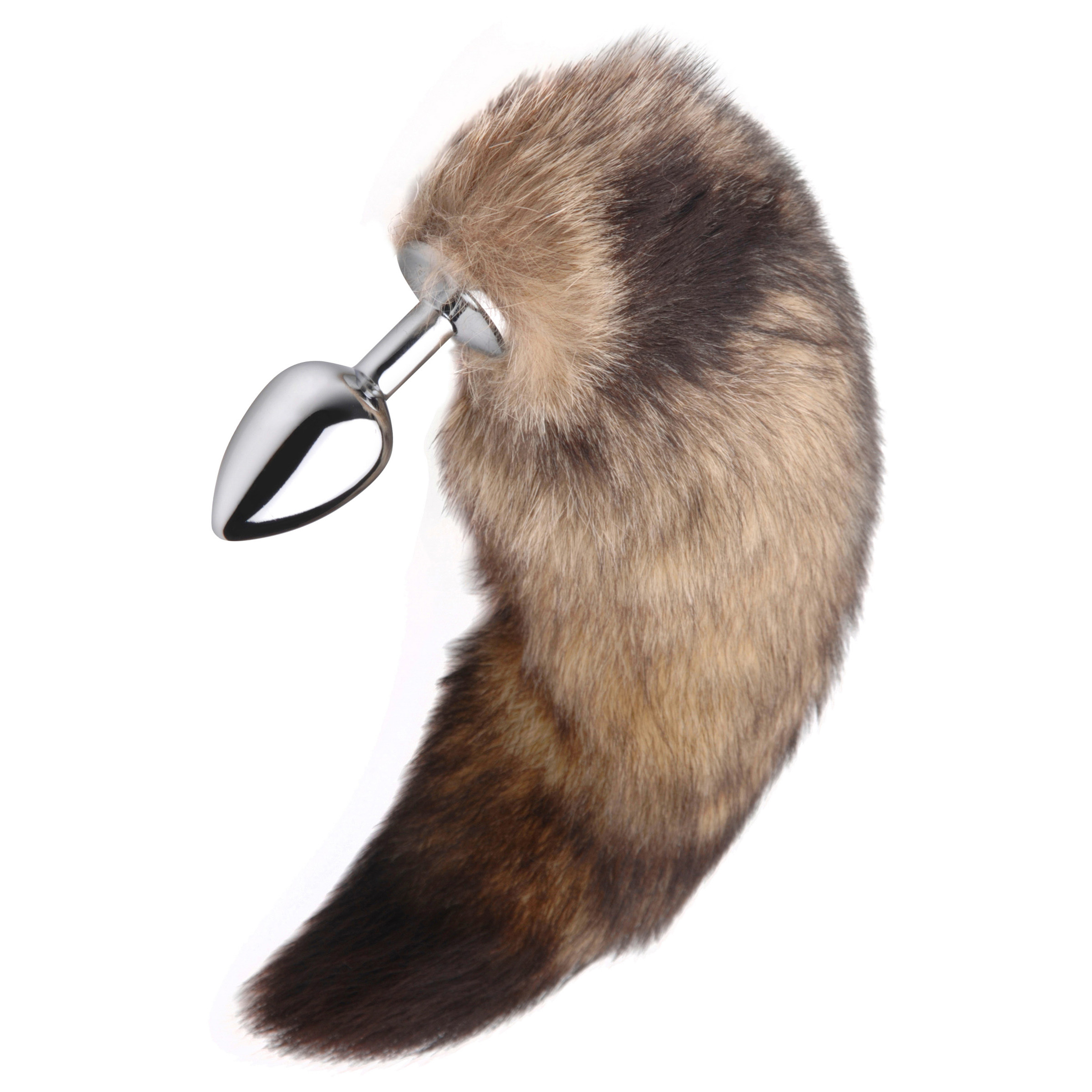 The shining metal of this visually stunning plug is topped by a bushy tail of real fur, to help unleash their wild side. The smooth, flawless aluminum alloy is designed with a tapered tip and gently swelled body, with a nice slim shaft and flared base to help keep it comfortably in place, even when they are crawling around on all fours. The metal warms quickly to their body temperature, and can be heated up or cooled down as you desire. The plush tail is thick, full, and luxurious. Cloud soft and sturdily anchored in place, it will wag and wiggle with every movement. Metal makes an ideal anal play material, since it is non-porous, easy to clean, and safe with all types of lube. The alloy material is slick and smooth like stainless steel, with less weight. The demure size means that practically anyone can use this exciting fox tail in their next bedroom roleplaying session.
