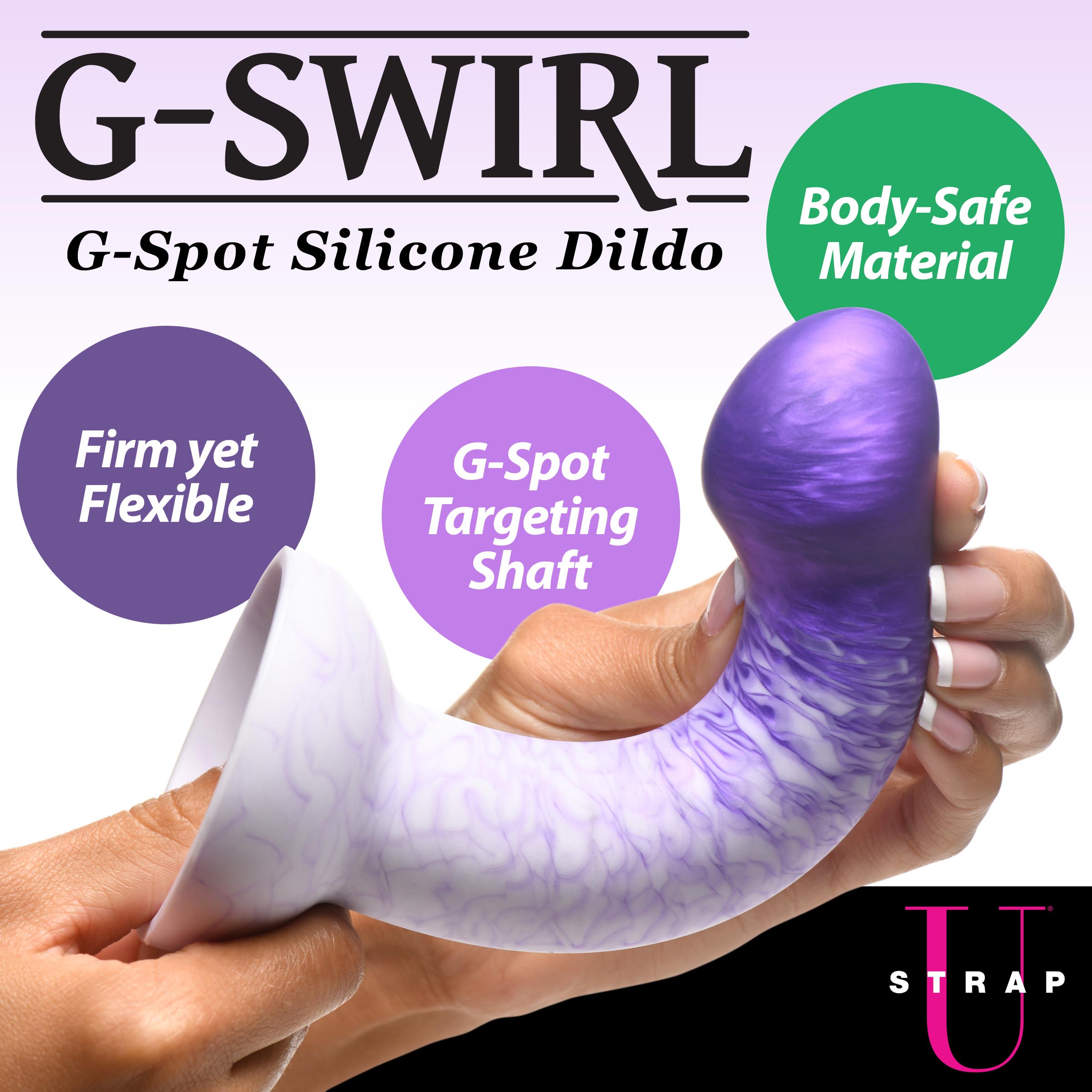 Gorgeous Swirled Silicone: Enjoy the artistic and beautiful swirls of color mixed into the white. Made of premium, phthalate-free silicone for body-safe fun.Flexible, G-Spot Targeting Shaft: The firm silicone shaft is flexible and bendy with a G-spot targeting bulb at the head.Strapon Compatible: Pair with your favorite strapon harness for pegging play with a partner!Suction Cup Base: Ride solo by using the strong, suction cup base. Place it firmly on a non-porous, flat surface.