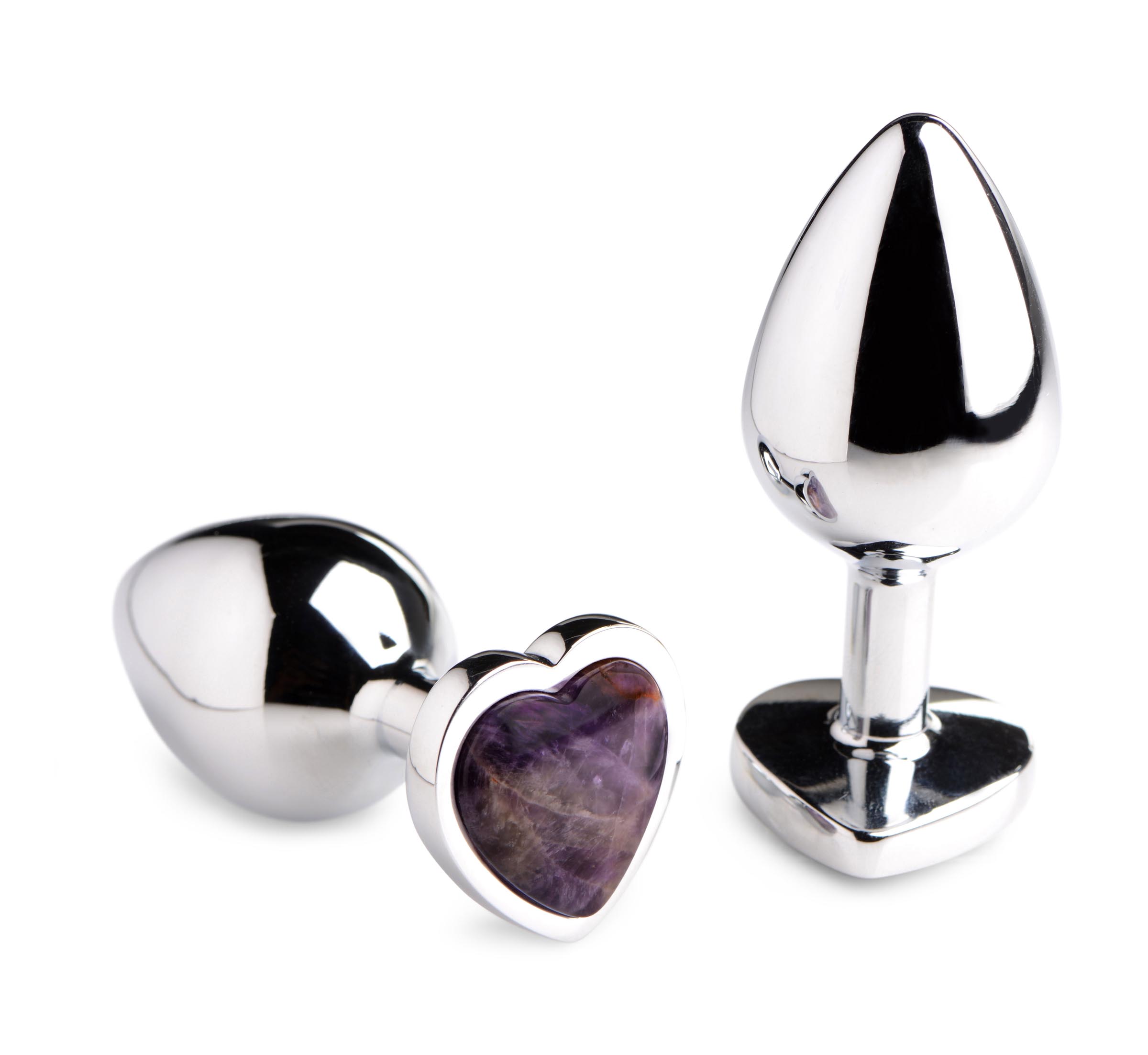 Genuine Heart-Shaped Amethyst Gem: Provide a calming, soothing energy to your butt; the heart-shaped Amethyst gemstone balances your mood, and helps clear negative thoughts while you playComfortably Weighted: Add a downward pull to your hole for additional stimulation and pleasure thanks to the weighty nature of these metallic butt plugsNickel Free Aluminum Alloy: The aluminum alloy material provides a deliciously hard and smooth mass for your ass to squeeze; compatible with most lubesGreat For Temperature Play: Warm or chill this gemstone butt plug in a bowl of water to add another layer of sensation while you play; perfect for veteran butt plug users looking for a new way to play