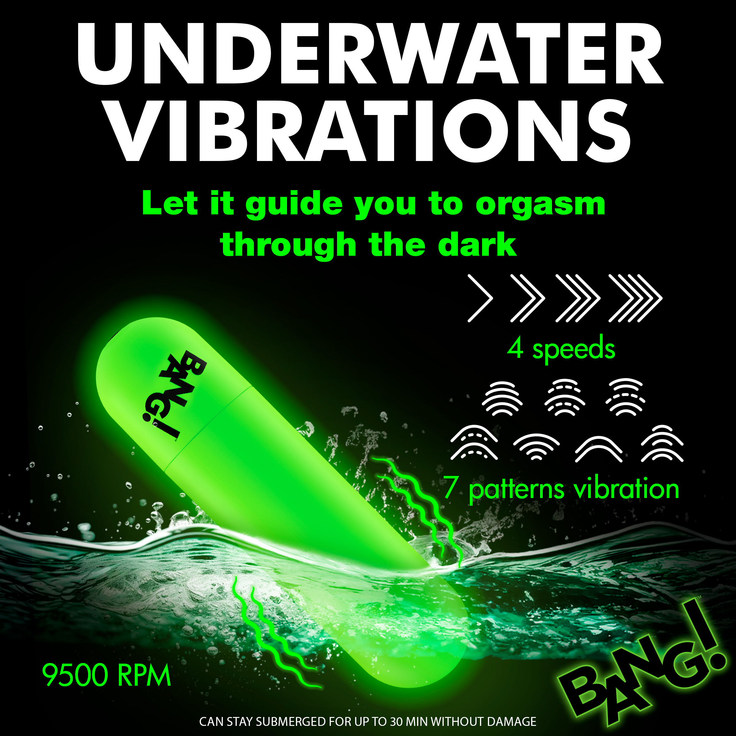 Powerful Vibes: Choose between 4 speeds and 7 patterns of vibration!Glow-In-the-Dark Bullet: Enjoy this small, travel-friendly, glowing bullet vibe!Remote Controlled: Use the battery-operated remote to change settings.Waterproof and Rechargeable: Rated IPX7 waterproof so it can handle showers or be submerged underwater for up to 30 minutes. Recharge via the USB cable provided.Premium Silicone: Made out of premium, phthalate-free, body-safe silicone.