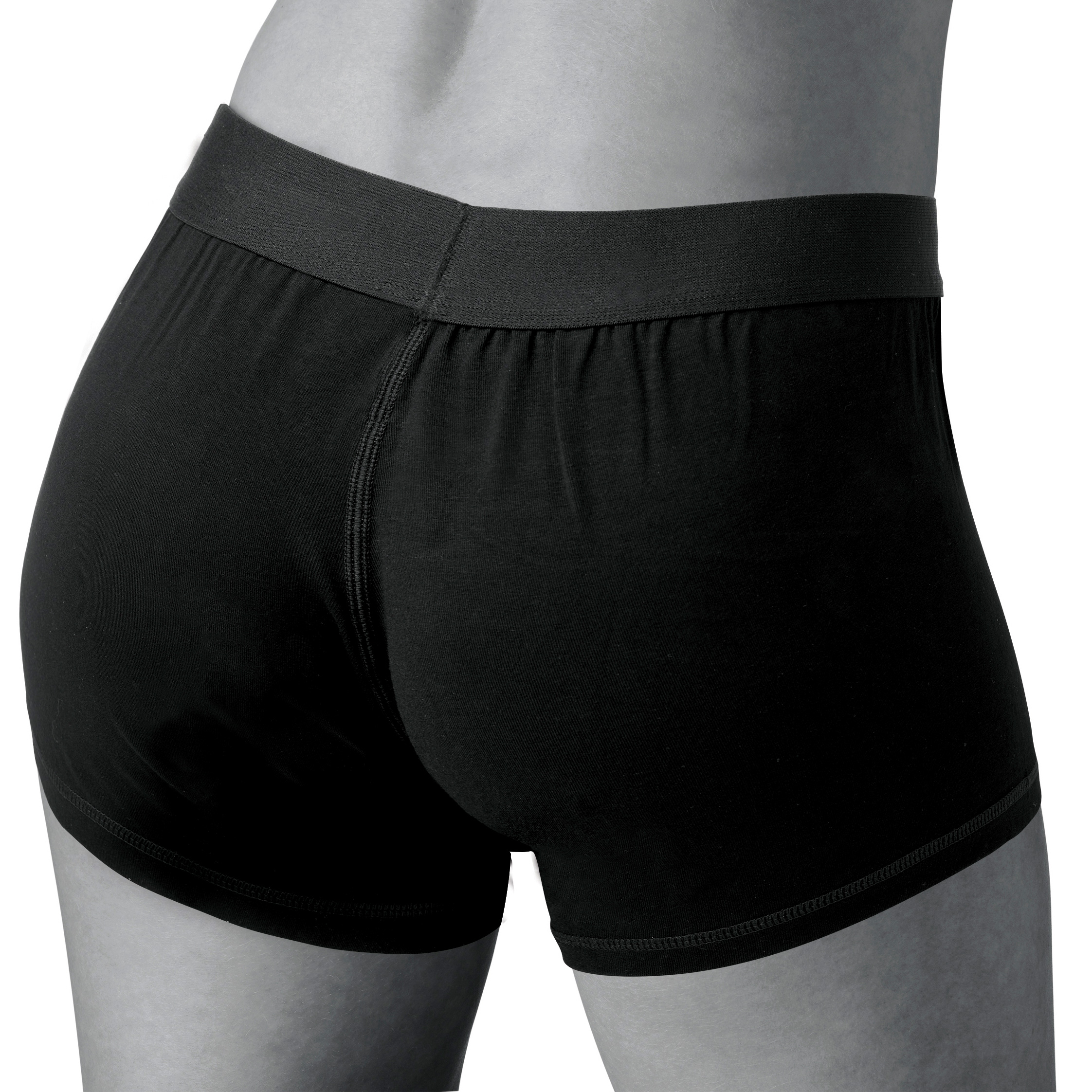 The harness itself is machine washable so you can throw it in with the rest of your laundry after a session, and the reserved aesthetic mimics a regular pair of black boxer briefs for privacy.