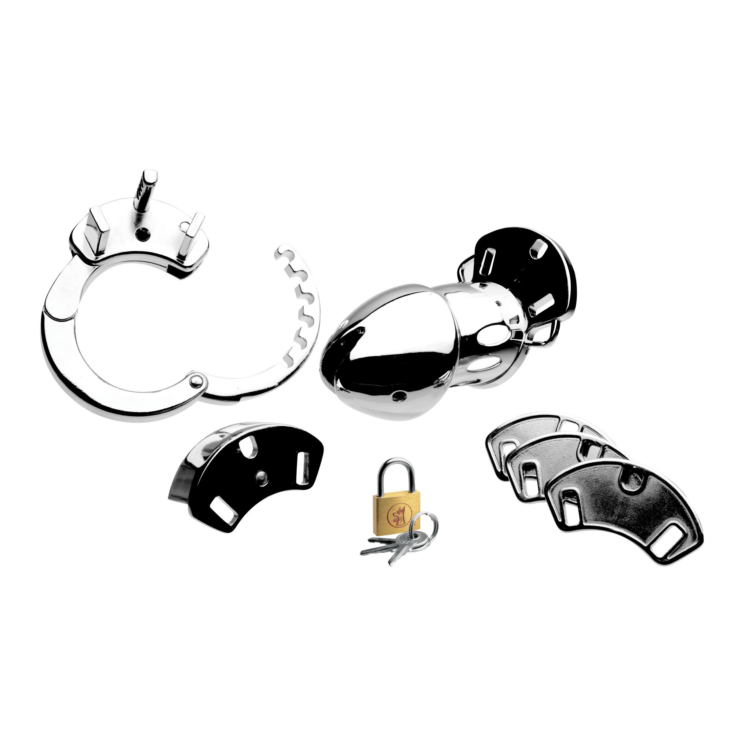 Note: Includes cage, cock ring, 3 spacers, lock, and key.