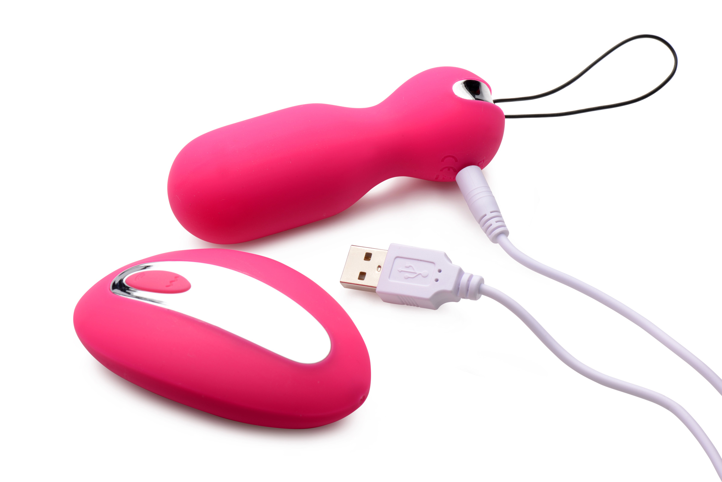 This double charged pleasure kit comes with two vibrating toys for a range of pleasure options The smooth insertable egg has a sturdy, easy to use retrieval cord. Once inserted, you can control the 10 exciting functions with the soft, one-touch remote. Ergonomically curved and covered with soft, stimulating texture nubs, the remote also doubles as a powerful secondary vibe, providing rabbit- like internal and external stimulation simultaneously Or simply hand it to your partner for discreet remote stimulation- it works up to 50 feet away. The soft smooth silicone will feel heavenly against your skin, and is easy to clean and hypoallergenic. Both the remote and egg are rechargeable via USB and waterproof. Measurements: Egg: 4 inches in total length, 1.3 inches in diameter; Remote: 3.5 inches in length, 2.2 inches in width Material: Silicone, ABS plastic Color: Pink Note: USB cord included