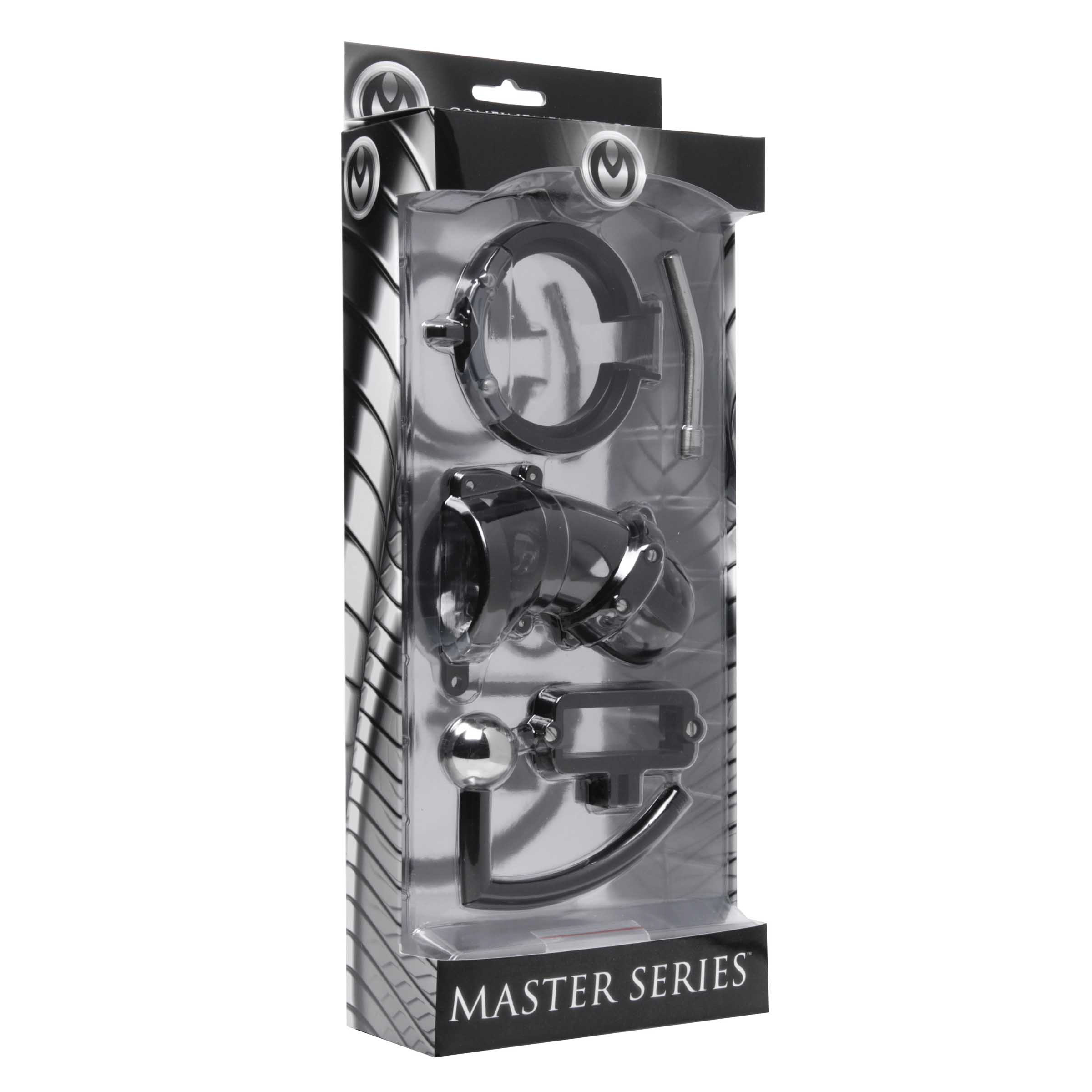 Keep him supremely locked into submission with this extreme chastity cage by choosing one of the three graduated rings to fit over the cock and balls, then fitting the cage over the penis shaft. Now is where the fun begins. You can choose if you want him to wear the removable cum-thru urethral plug, the detachable anal hook with stimulator, and detachable ball clamp. Each ring has a soft rubber sleeve at the hinge, to avoid pinching and for added comfort. This device secures with a flat head screwdriver.